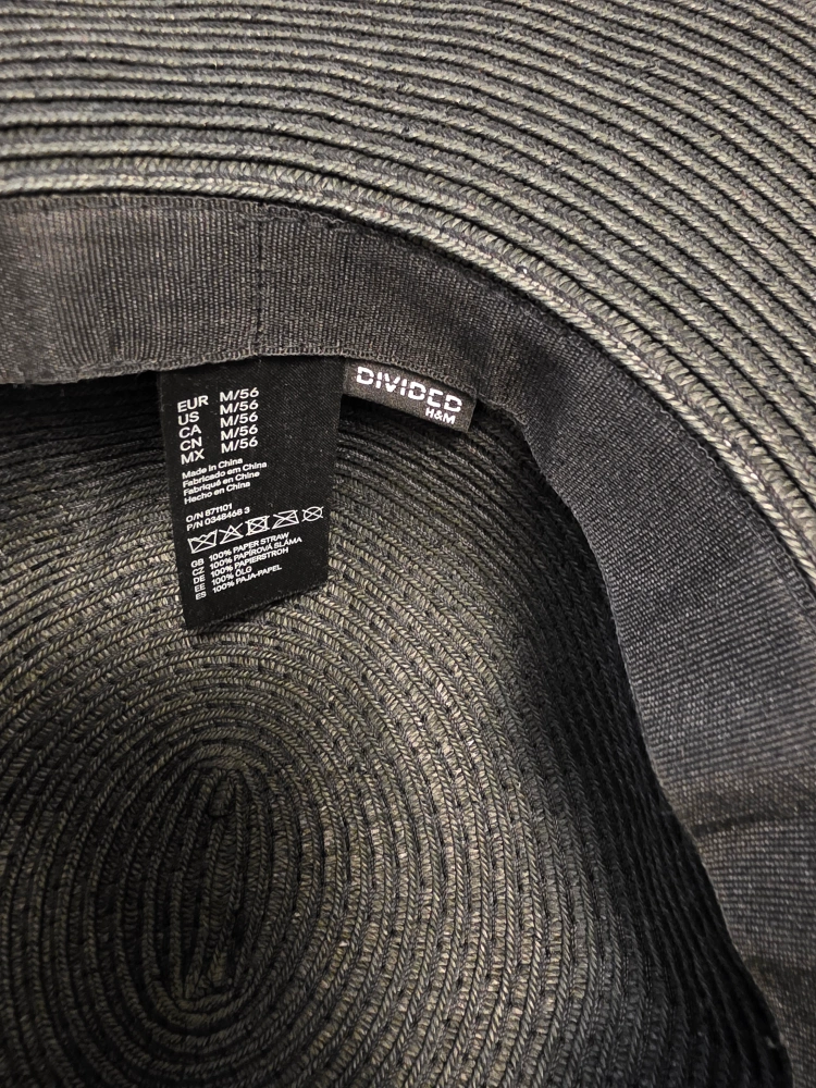 Stylish H&M Divided black floppy hat in size M! It's made of 100% paper straw, perfect for sunny days. A great addition to your wardrobe for a chic and comfortable look