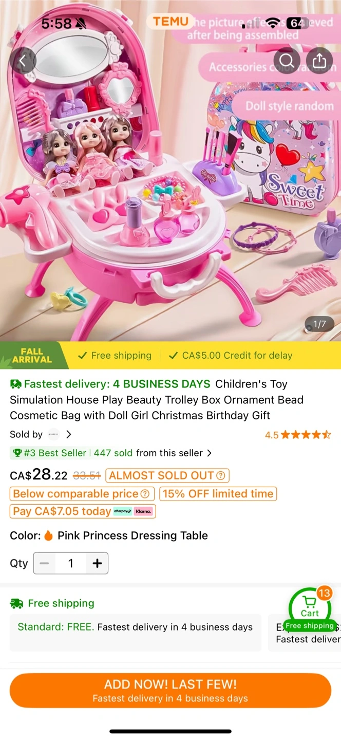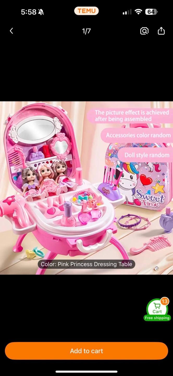 This is a children's toy simulation house play trolley box ornament bead cosmetic bag with a doll girl. It's a pink princess dressing table and a great birthday gift! Originally CA$28.22