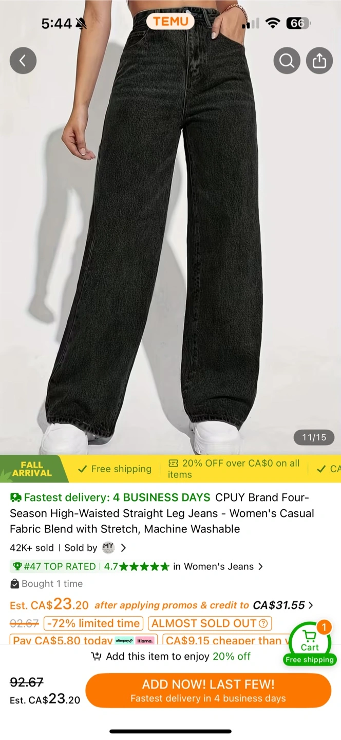 Selling a pair of CPUY brand four-season high-waisted straight leg jeans. These women's casual jeans have a fabric blend with stretch and are machine washable. They are a stylish and comfortable choice for everyday wear!