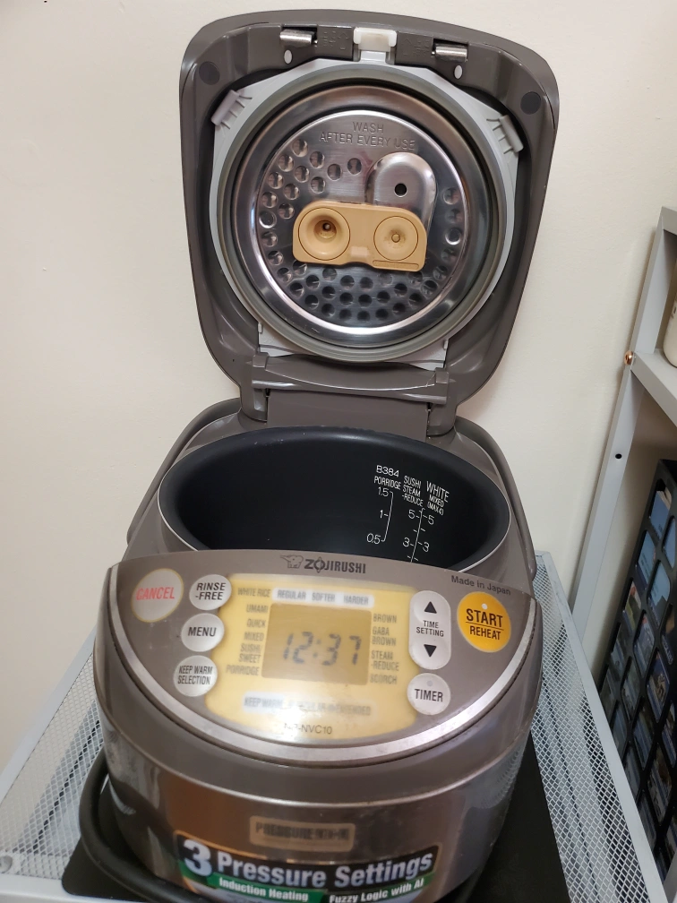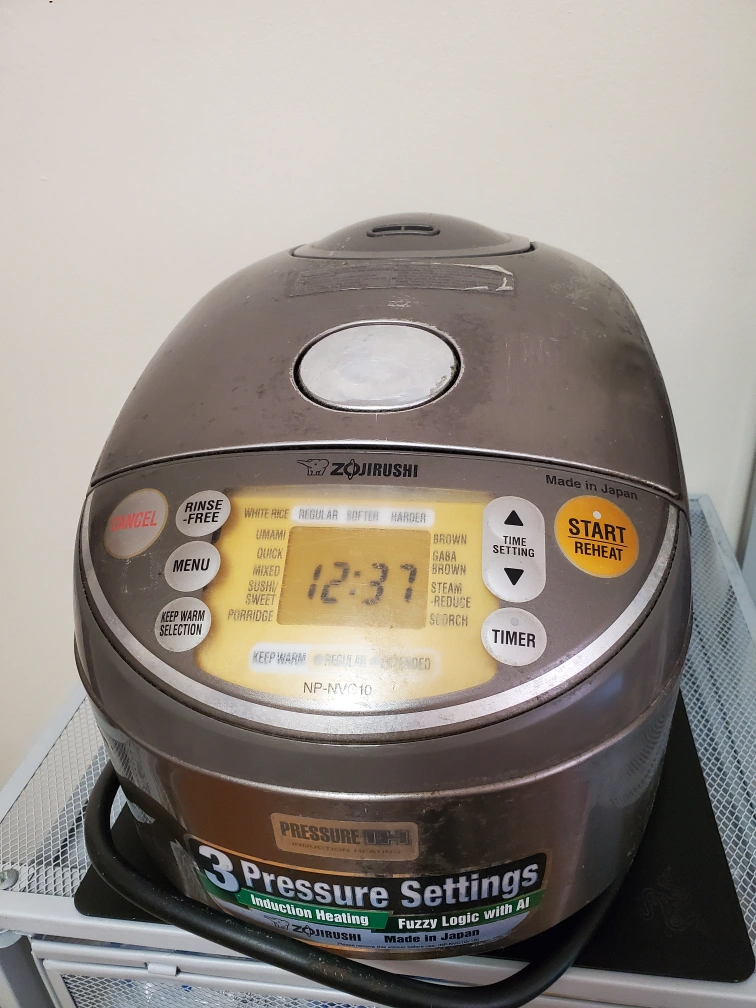 Looking to sell my Zojirushi NP-NVC10 rice cooker. It's in good condition and ready to help you make perfect rice every time! It features: - 3 Pressure Settings - Induction Heating - Fuzzy Logic with AI - Made in Japan