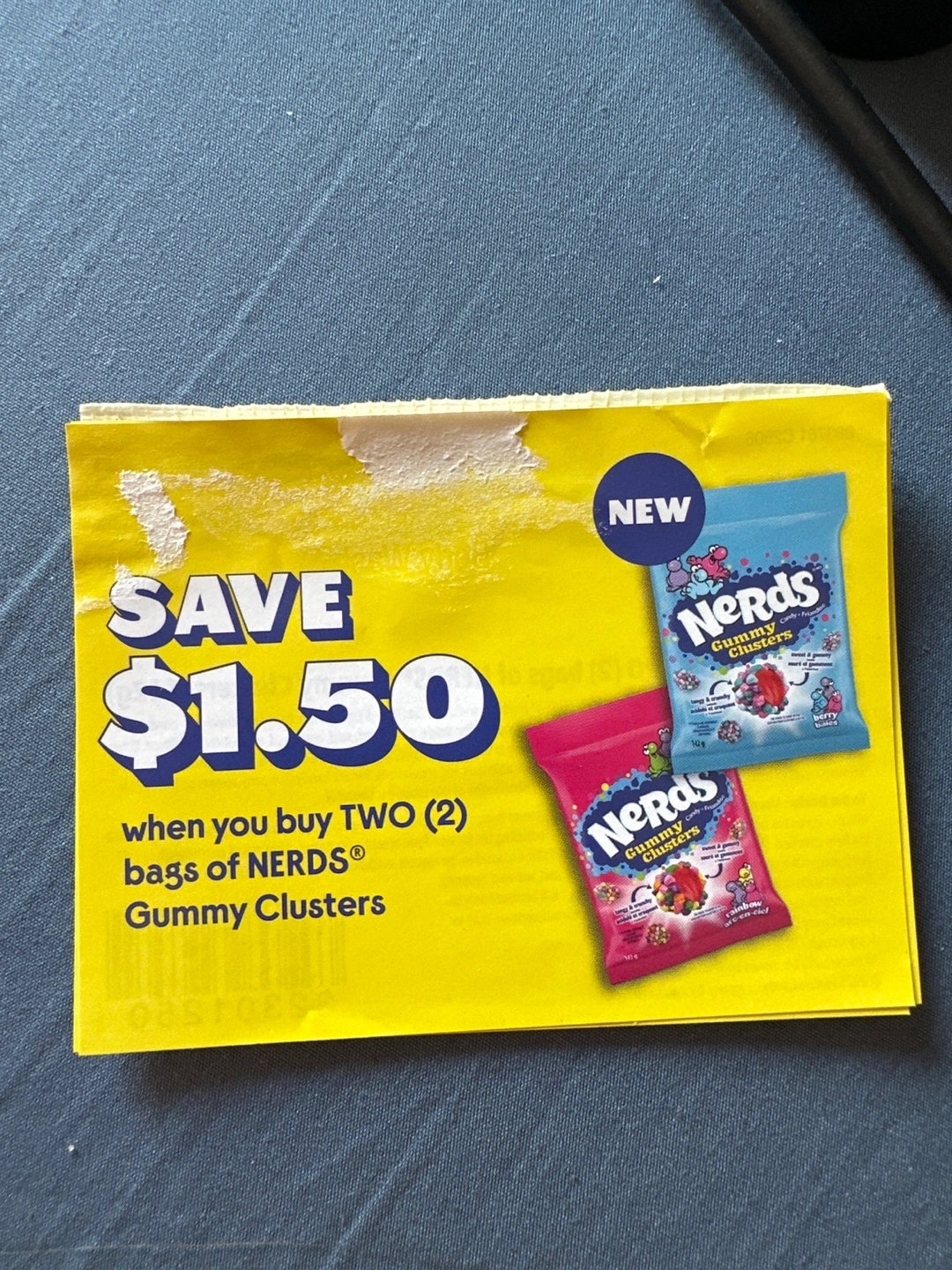 Save $1.50 when you buy two bags of Nerds Gummy Clusters with this coupon!