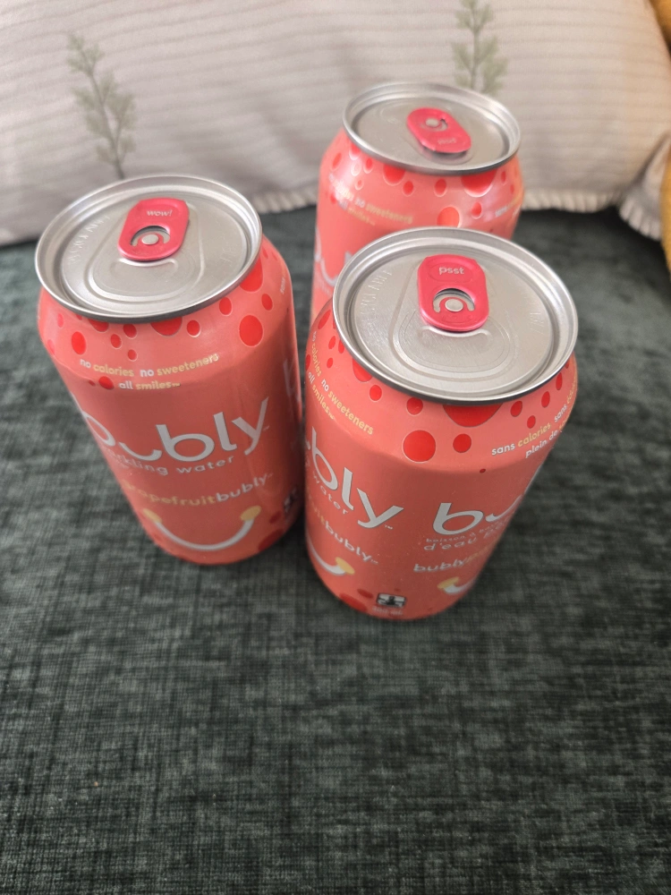 Selling some cans of Bubly grapefruit sparkling water. These have no calories and no sweeteners, just smiles! Perfect for a refreshing drink
