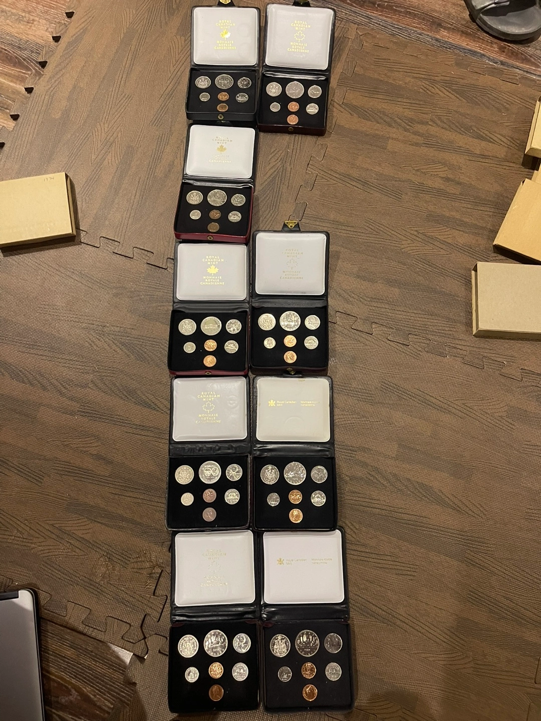 Selling a collection of Royal Canadian Mint coin sets, dating from 1971 to 1980. Each set is in its original box, making them a great addition for any coin collector! They've been well-preserved and are looking for a new home