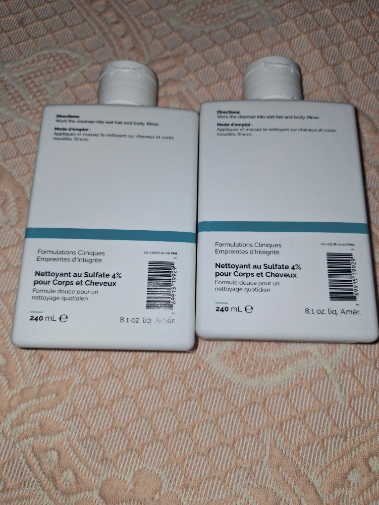 I'm selling two bottles of Clinique's gentle Sulfate 4% Cleanser for body and hair. Each bottle contains 240mL (8.1 oz) of product, perfect for daily cleansing. This cleanser is designed to be gentle on both your hair and body, making it a convenient addition to your routine