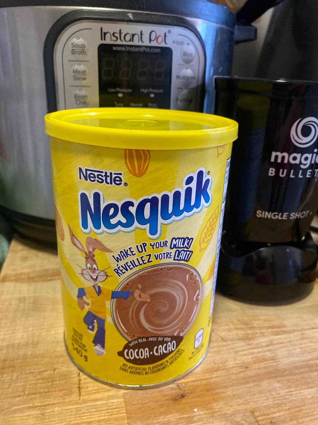 given away a can of Nestle Nesquik cocoa powder. It contains real cocoa and has no artificial flavors or colors. Perfect for making delicious chocolate milk! used 3 spoons already