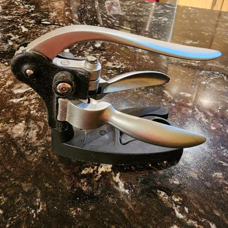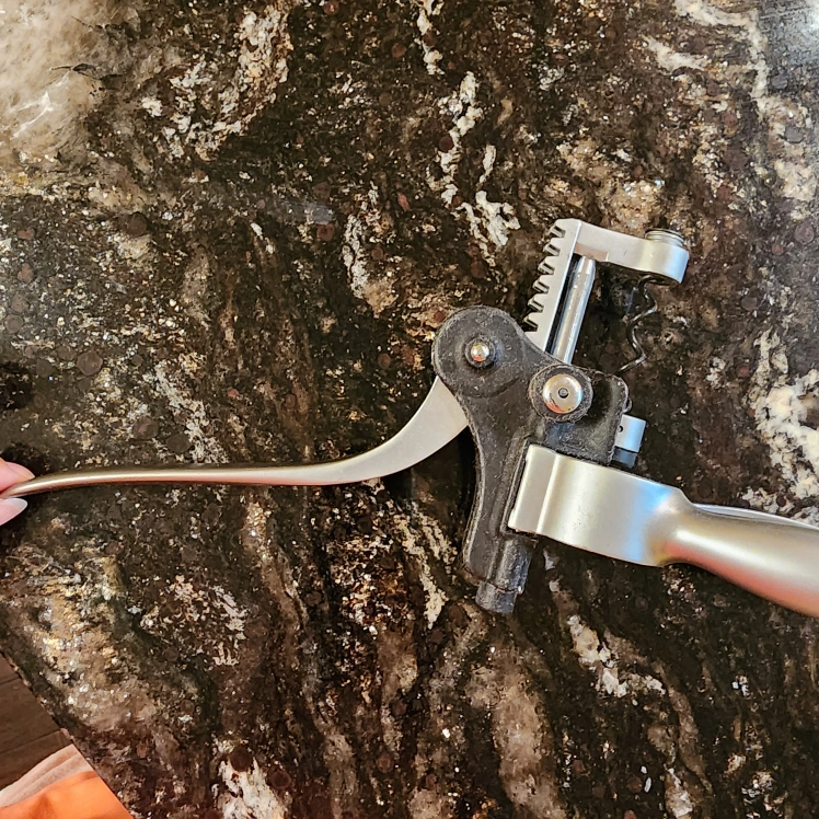 Gifting a wing corkscrew wine opener for your favourite bottle! It's missing the top screw cap - see pic where I'm pointing at it. It still works if you hold your finger over it to keep it in place. You could probably also glue it in place. Free if you think you can MacGyver it somehow!