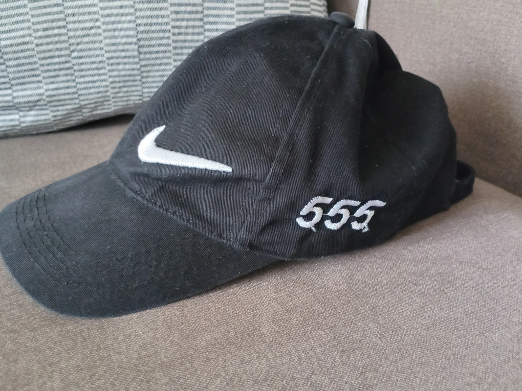 Here's a classic black Nike baseball cap! It's in good condition and ready for a new home. Features the iconic Nike swoosh logo and a unique '555' detail on the side. Perfect for everyday wear!