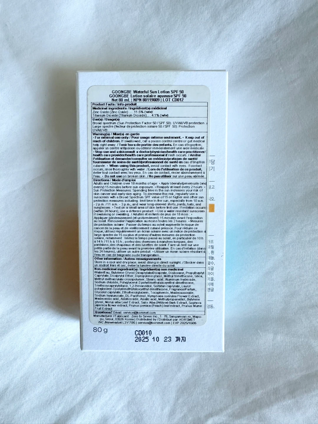 Brand new in box GOONGBE Waterful Sun Lotion SPF50 Full size 80 ml EXP 2025 October 23 Pickup on Alderbridge Way, Richmond.
