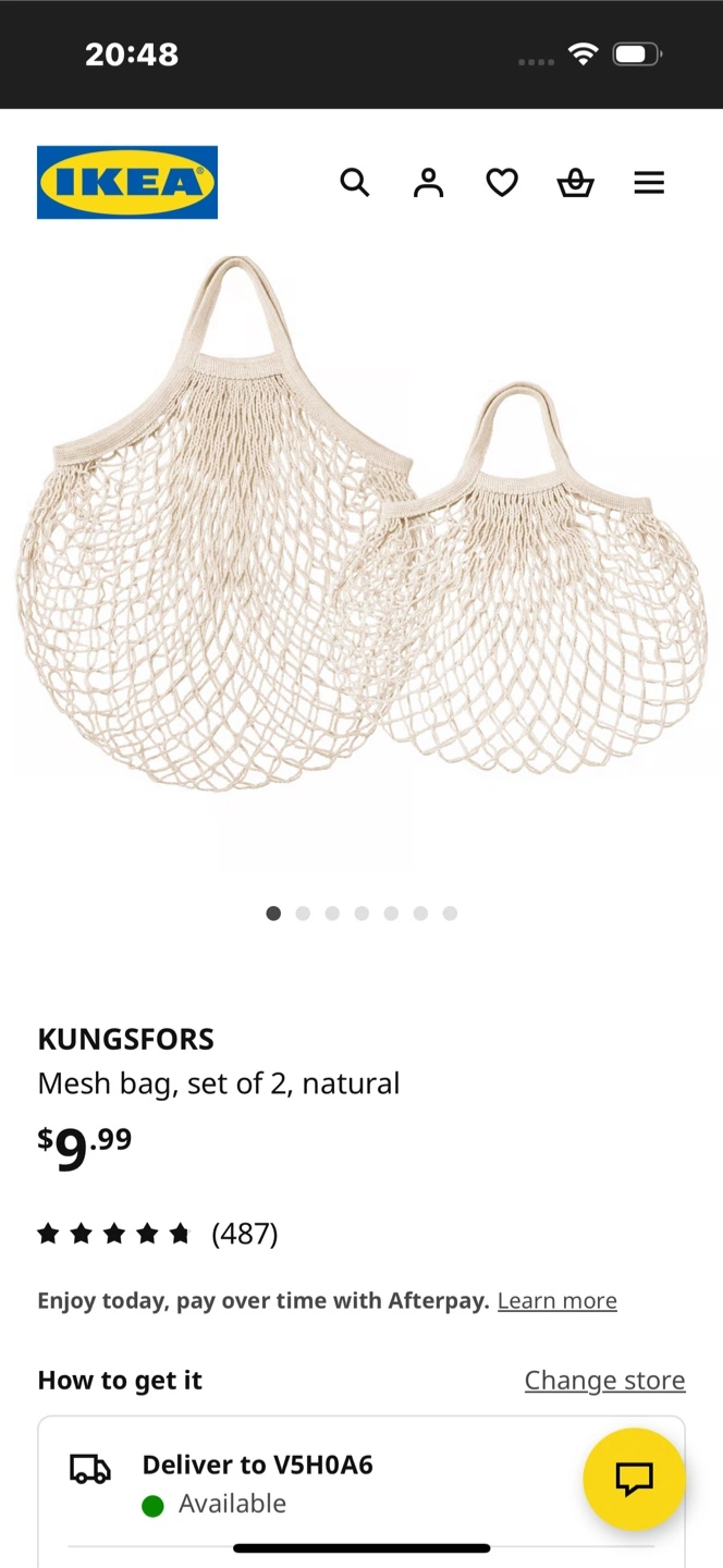 Bought and never used these! Selling a set of two IKEA KUNGSFORS mesh bags in natural colour. They're perfect for groceries or carrying everyday items. lightweight and portable, making them super convenient for shopping. Originally bought for $9.99 🙏Cash only, no returns or exchanges.