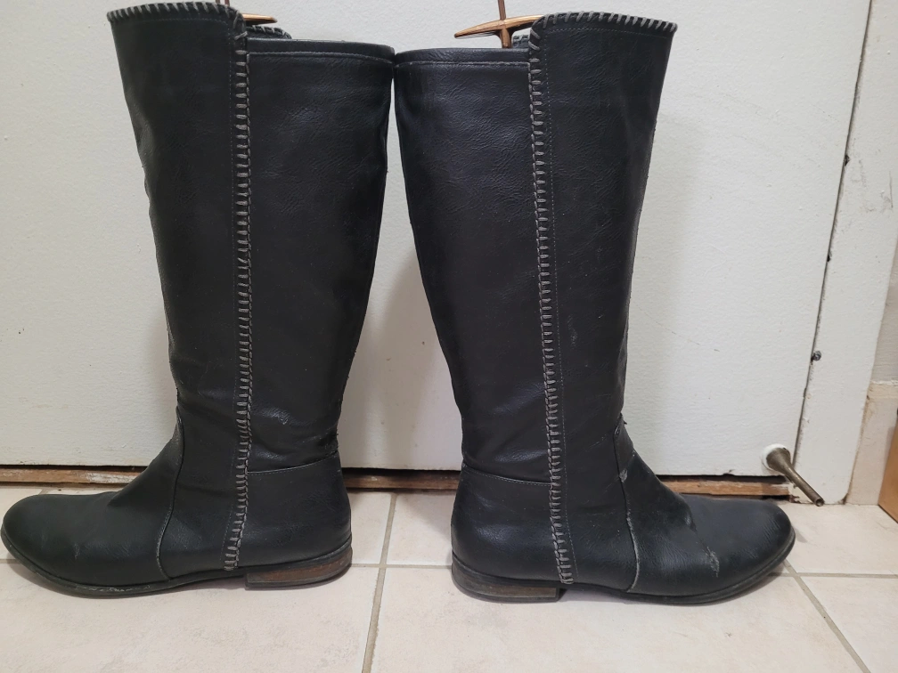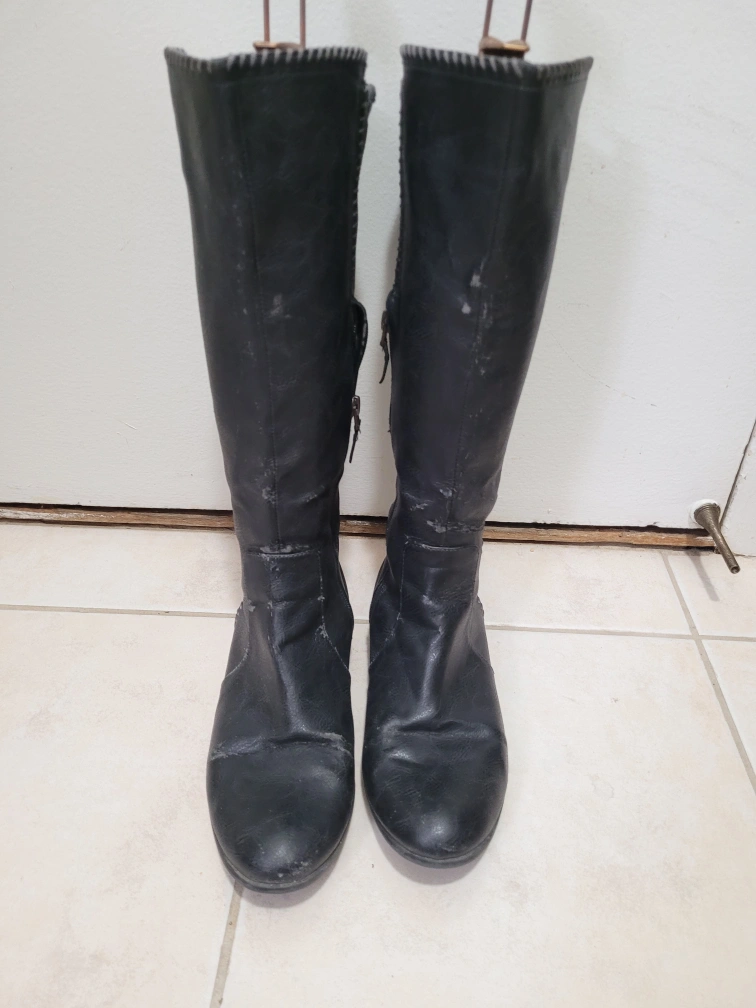 FREE pair of Dr. Scholl's black leather knee-high boots. size 8.5-9 They show some signs of wear, as you can see in the photos, but they still have lots of life left in them! The soles are marked with the Dr. Scholl's logo. Pick up only Etobicoke Kipling and Eglinton area no PPU (high-rise)