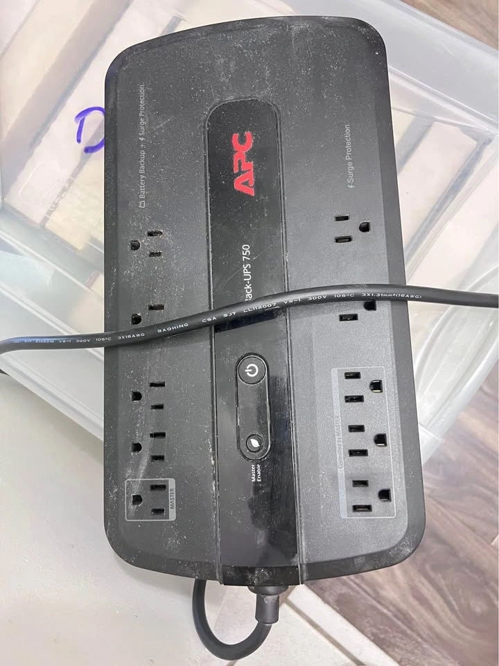 Used but fully functional APC Back-UPS BE750G (750 VA / 450 W) battery backup & surge protector: • Features 10 outlets—5 for battery backup + surge protection, and 5 for surge only. • Compact, reliable unit ideal for protecting PCs, routers, or home electronics. • Powers a 225 W load for ~11 minutes or a 450 W load for ~2 minutes as per specs. • Cosmetic wear from use, but in good working order. • Includes power cable; battery condition tested and working. • Priced at CA $60 O.B.O.—fair. • Pickup available in Richmond, BC.