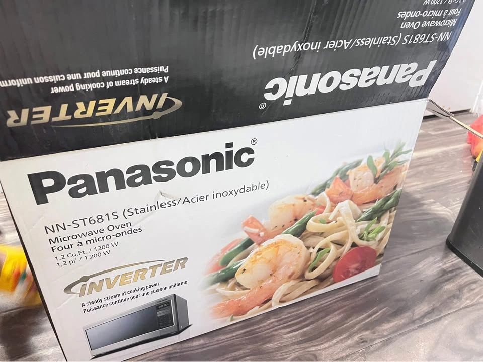 Selling a brand new, never used Panasonic NN-ST681S microwave oven. Capacity: 1.2 cu. ft. / 1200W. Stainless steel design โ sleek and modern. Inverter Technology for even cooking & defrosting. Sensor Cooking & Reheating โ one-touch convenience. Features: Popcorn, Keep Warm, Quick 30-sec, Turbo Defrost, Child Lock. Condition: Factory new in box (see photos)