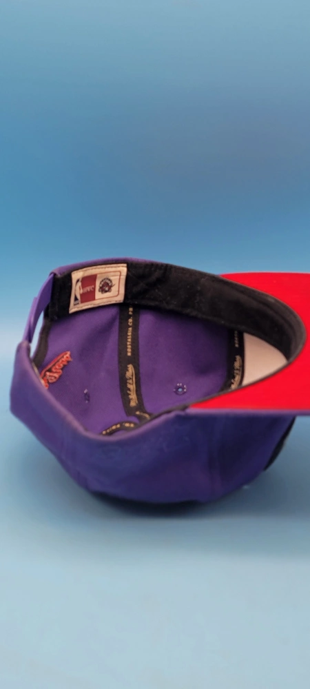 Selling a purple Mitchell & Ness Raptors hat! It's in great condition and ready for a new home. The hat features the Raptors logo and has a red underbrim. Perfect for any Raptors fan! Please look closely at the attached photos to go along with the description and the condition of the item. Willing to ship at the Buyers expense. Please see my many other listings. Thank you for looking. Have a Happy Day! 🙂