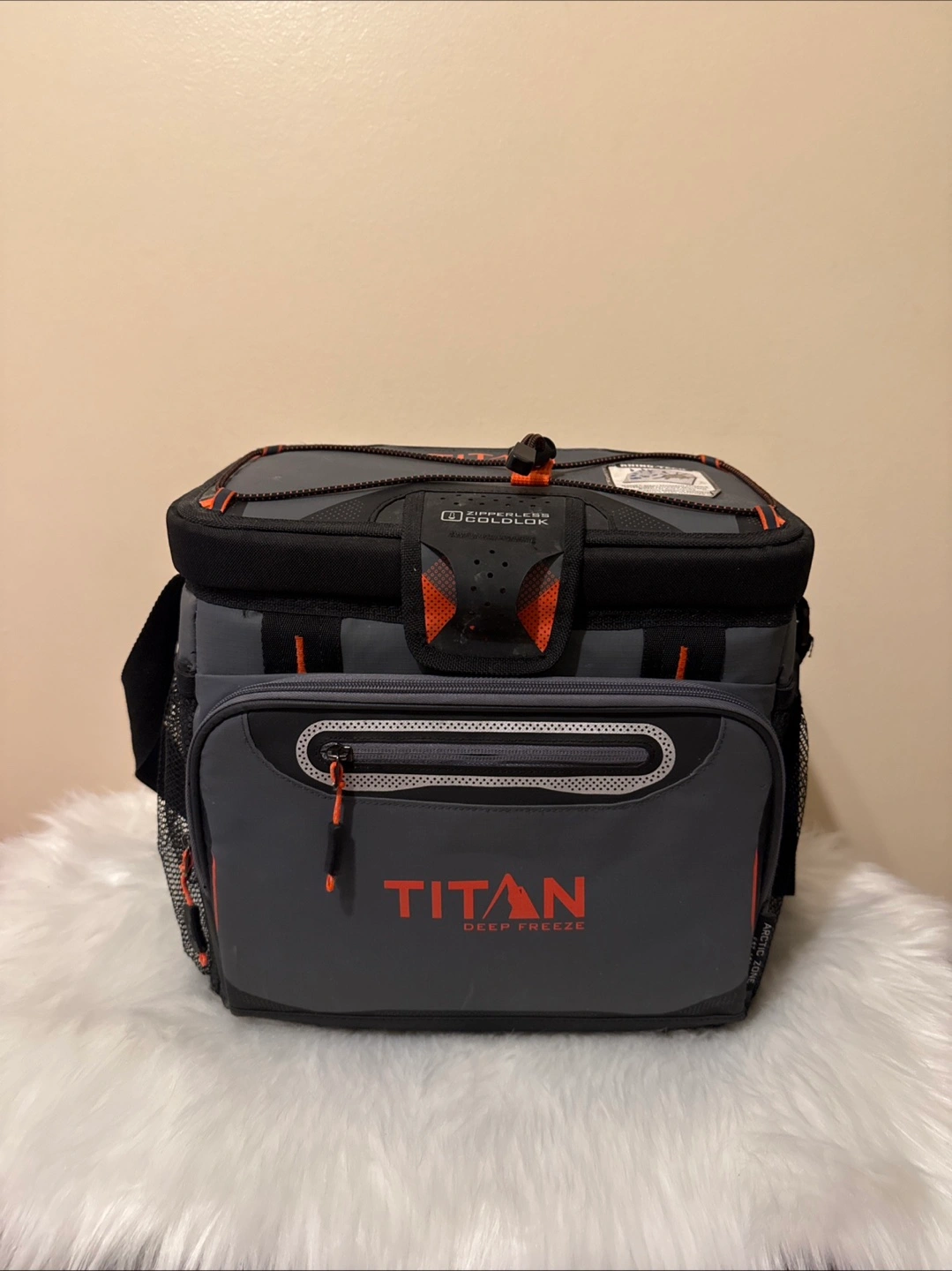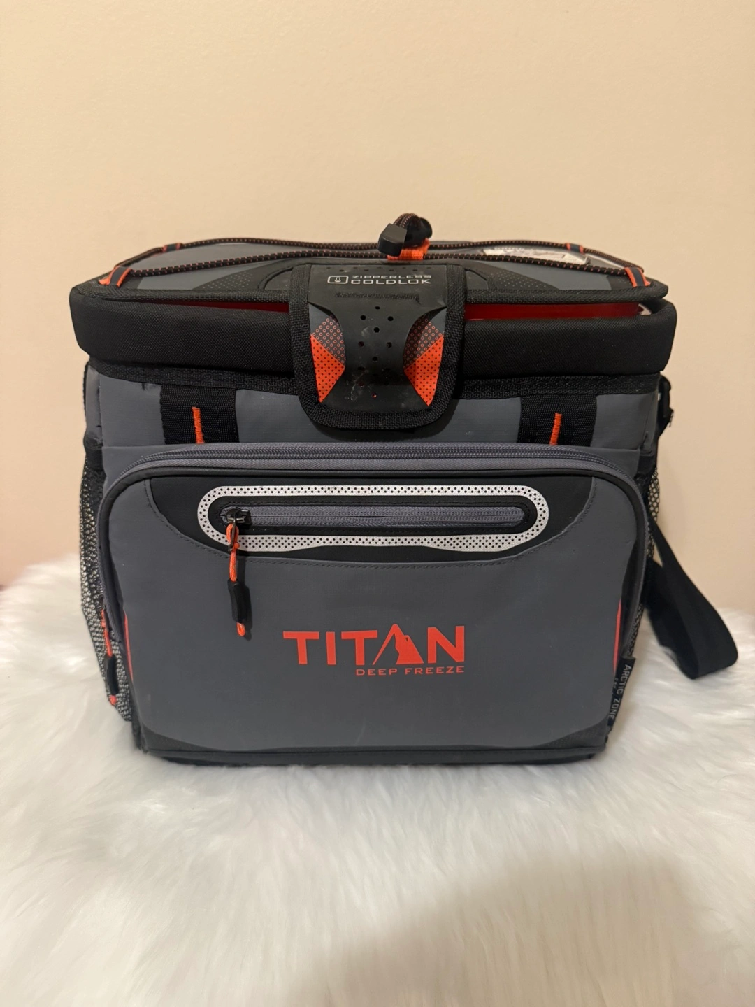 Keep your drinks and snacks cool with this Titan Deep Freeze Zipperless Cooler! It's in good condition and ready for your next picnic or road trip. Features a zipperless coldlok closure.