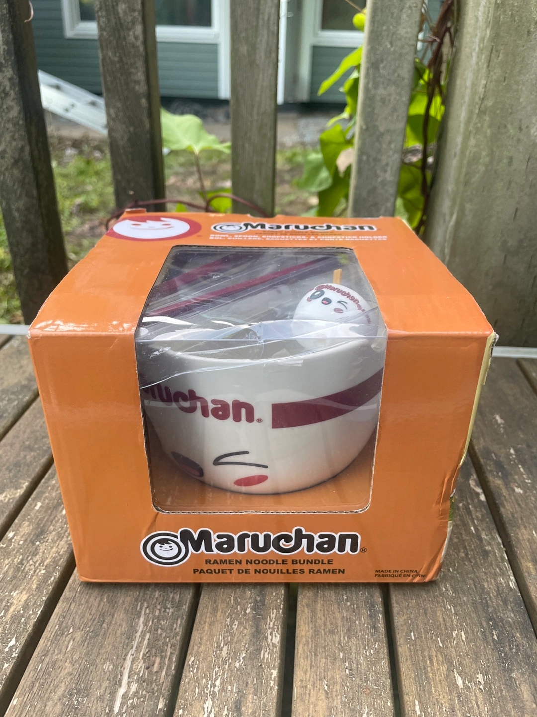 Selling a brand new Maruchan Ramen Noodle Bundle, still in its original box! This cute bundle includes a bowl, spoon, chopsticks, and a chopstick holder. It's the perfect set to enjoy your favourite ramen noodles with a touch of kawaii!