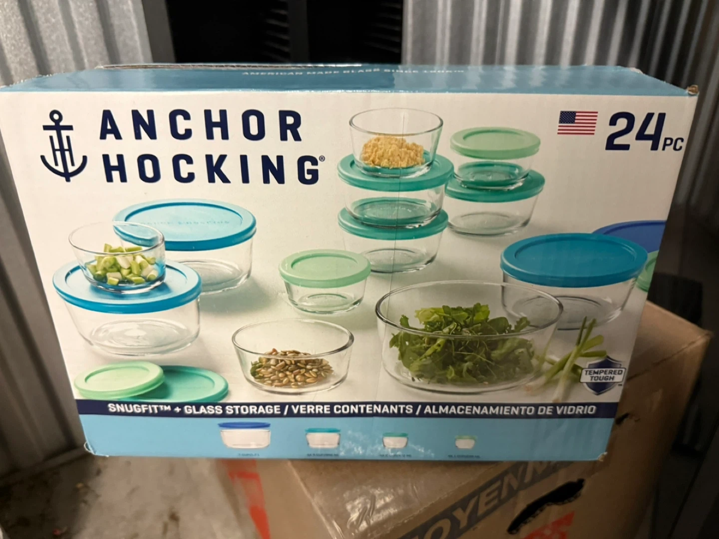 Brand new Snugfit 24-piece glass storage set $23 or OBO!