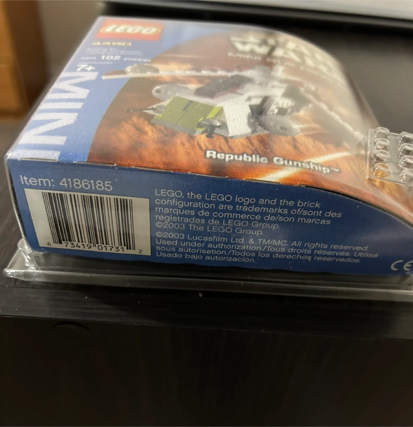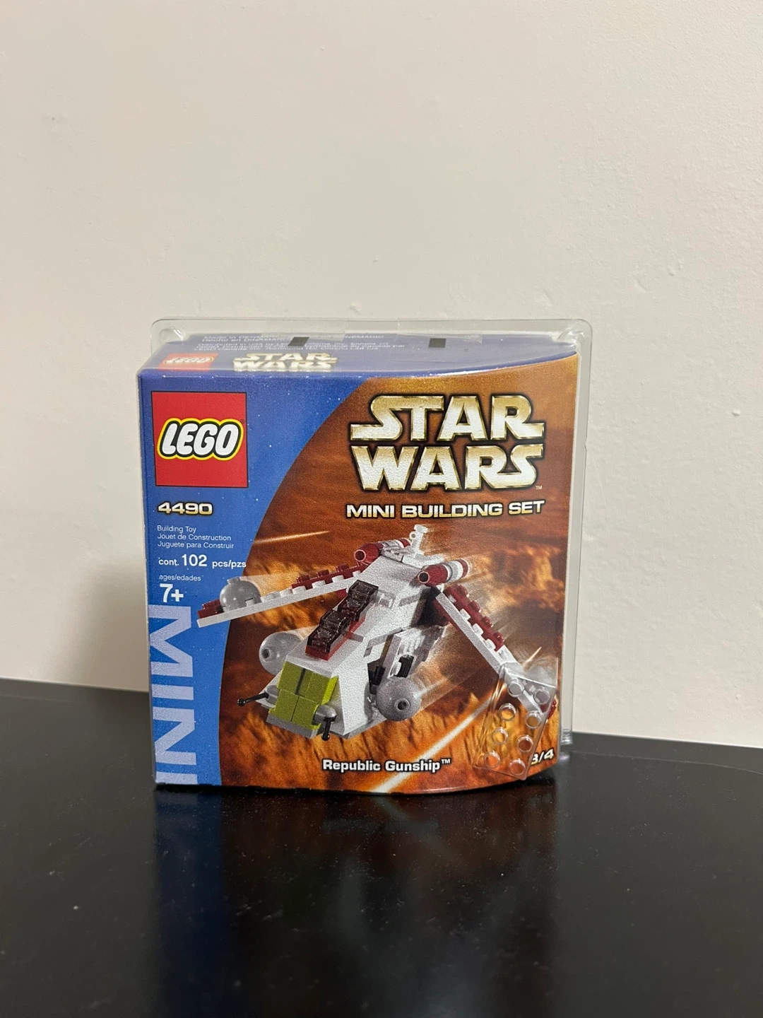 Selling a LEGO Star Wars Mini Building Set, model 4489, featuring the Republic Gunship! It contains 102 pieces and is suitable for ages 7+. New. Never opened. 2003