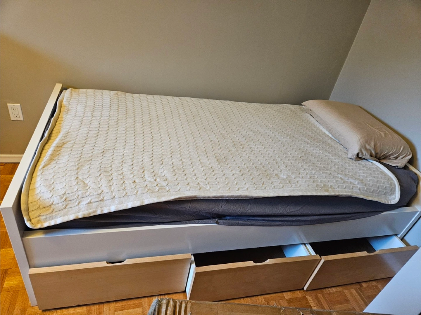 Selling an IKEA Hemnes daybed frame! It's in great shape and ready for a new home. The three large drawers provide plenty of storage space, making it perfect for smaller rooms or anyone who needs extra organization. It's a practical and stylish addition to any space! Mattress not included.