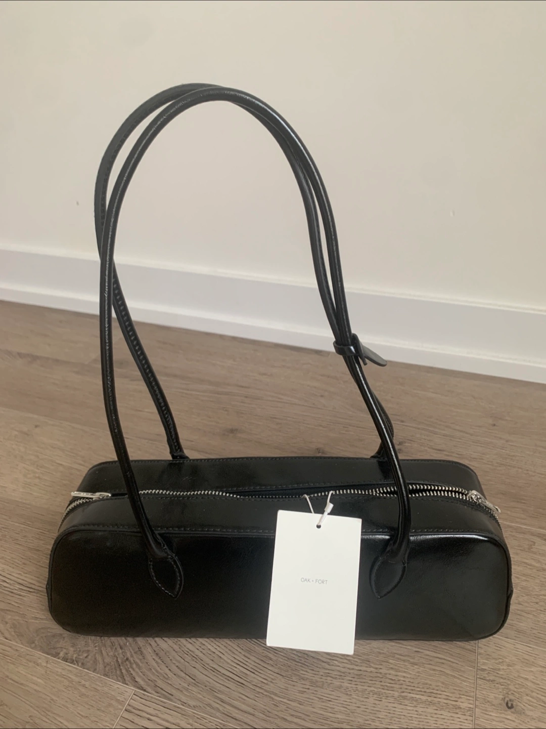 I'm selling a brand new Oak + Fort baguette bag! It's black and in perfect condition with the tags still attached. Originally bought for $68, it's a stylish and compact bag perfect for everyday use .(13cm (w) x11cm (H ) x7.5 cm (D)