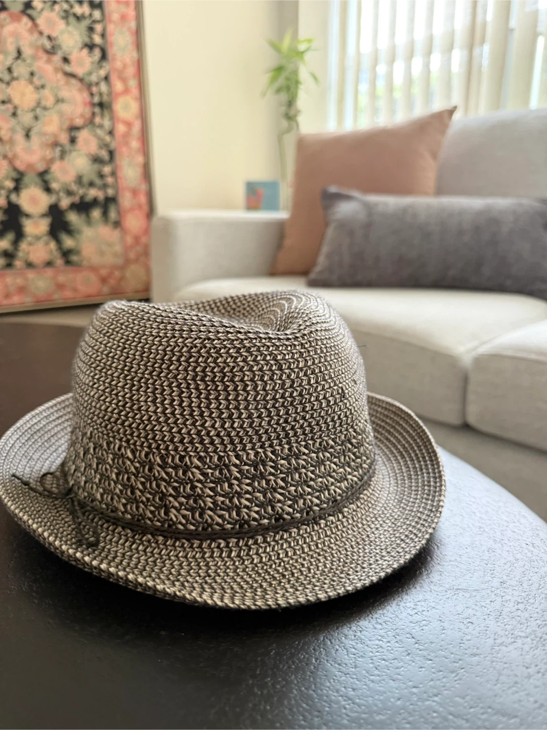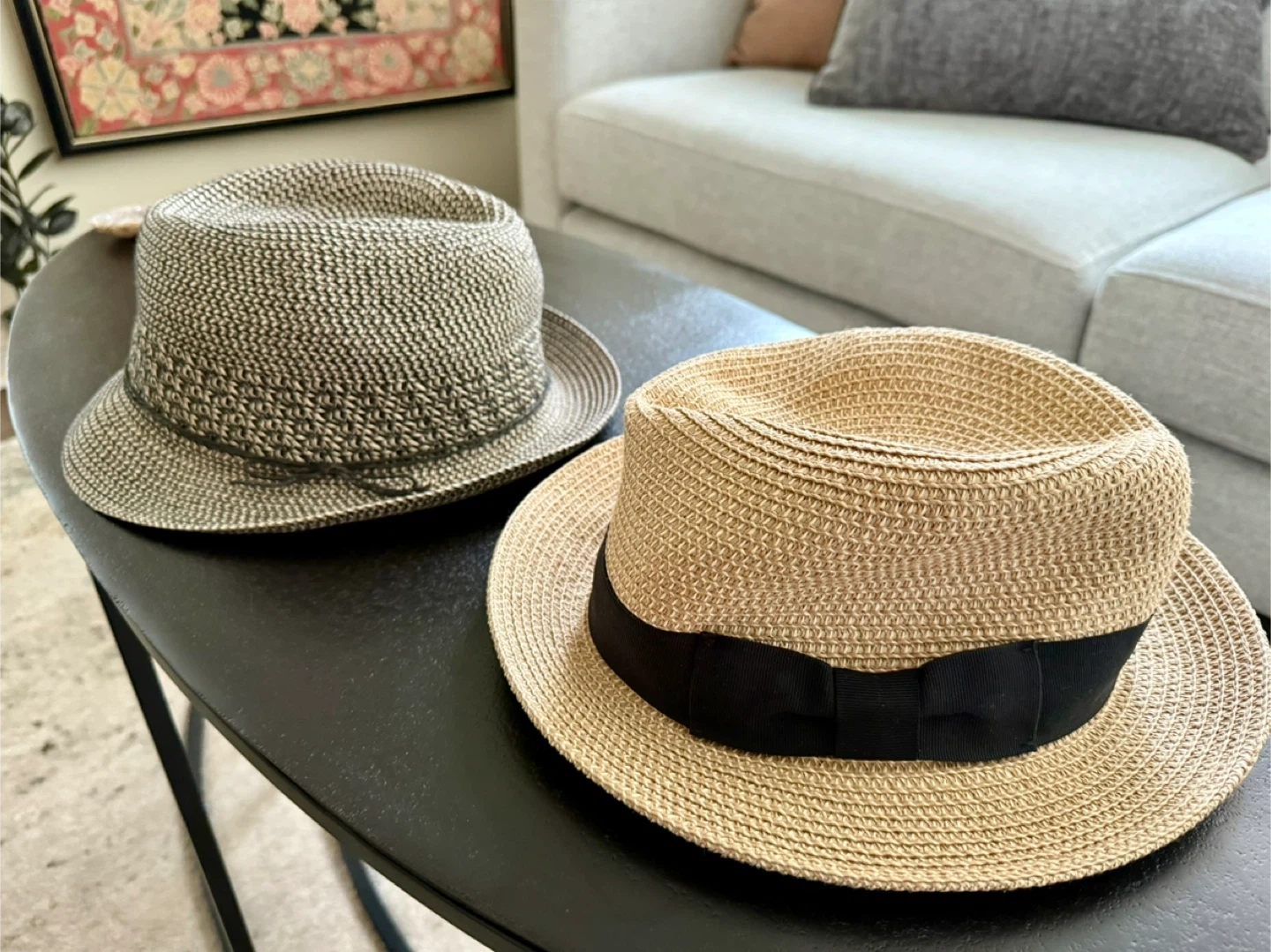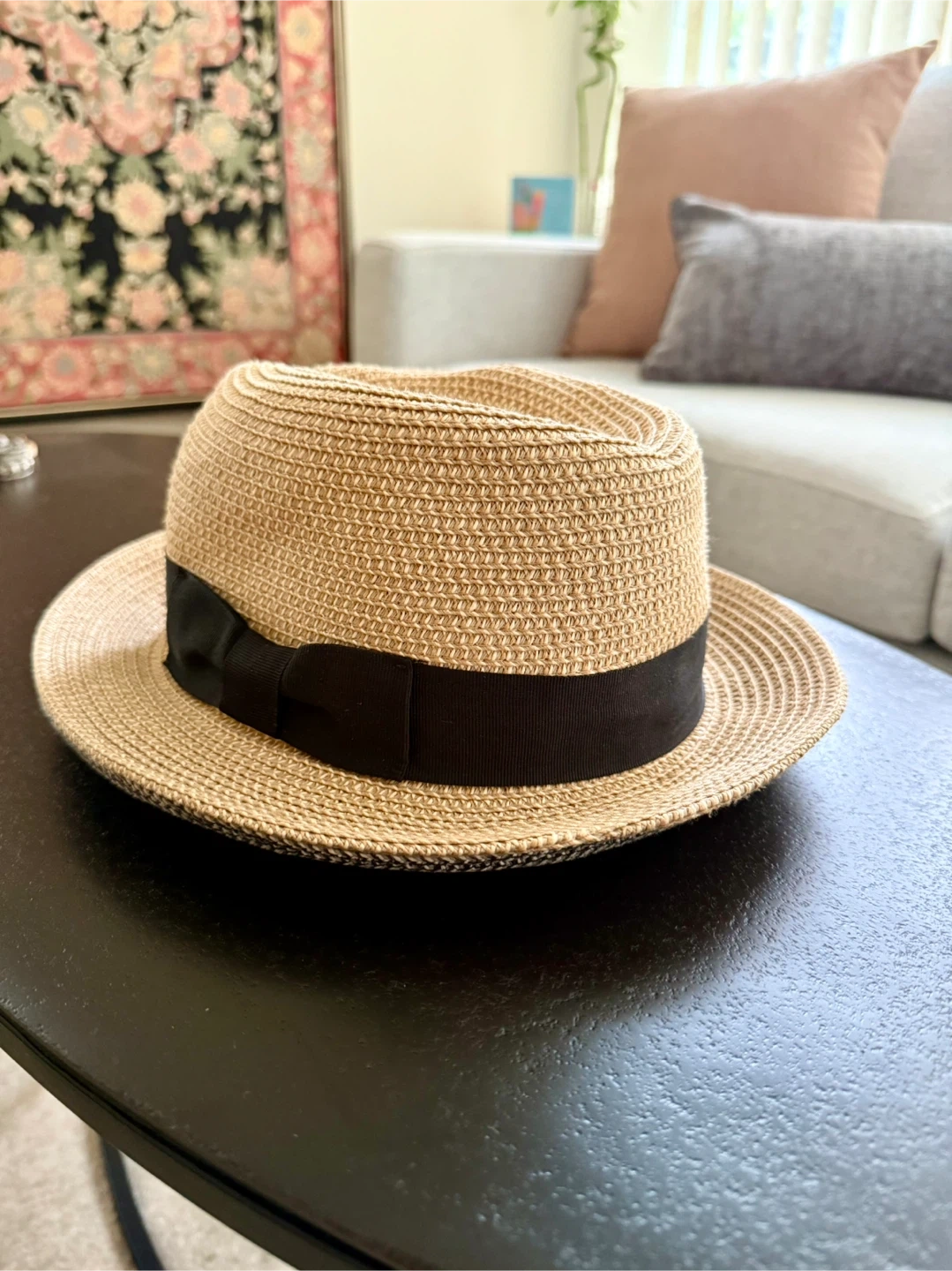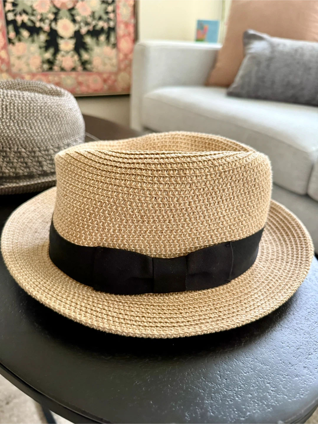 Two stylish hats - x1 Nine West hat, neutral grey/black pattern - x1 Talula hat, light tan colour with a black ribbon from Aritzia - Sized S/M - Great for Spring and Summer - Selling both for $10