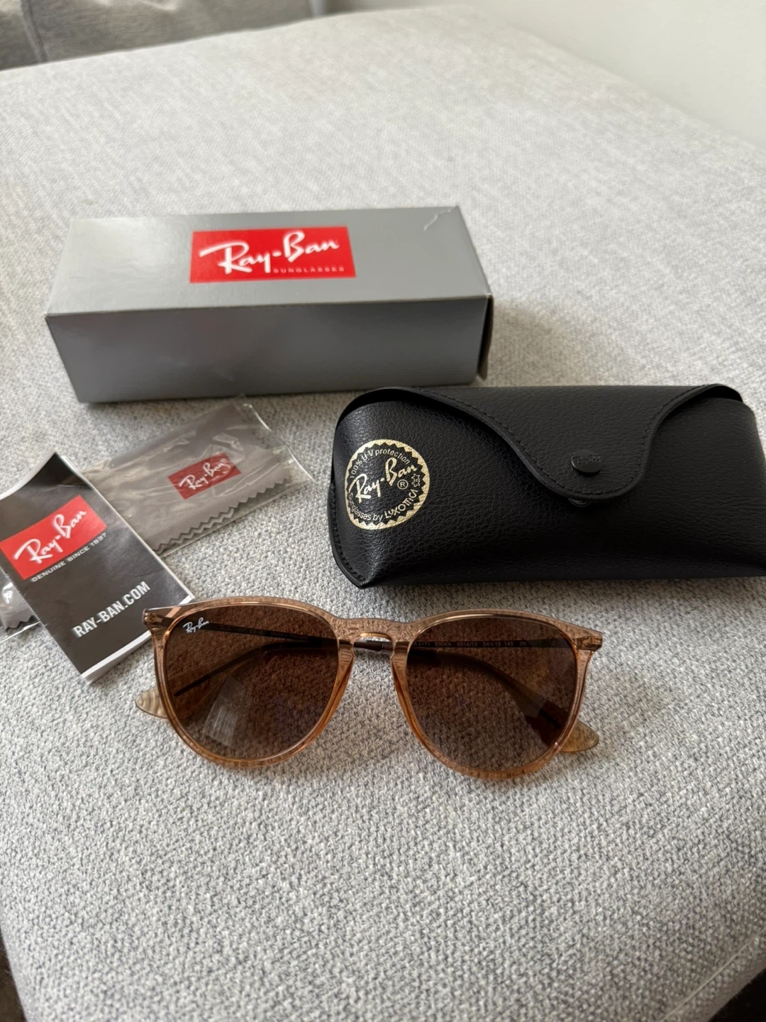 - Brand New! - Ray-Ban Erika sunglasses - Unisex - Transparent light brown - Lenses are brown gradient dark brown - Never used, with the original box and case - Original price $233 + taxes ($263) - Great for both summer and fall looks