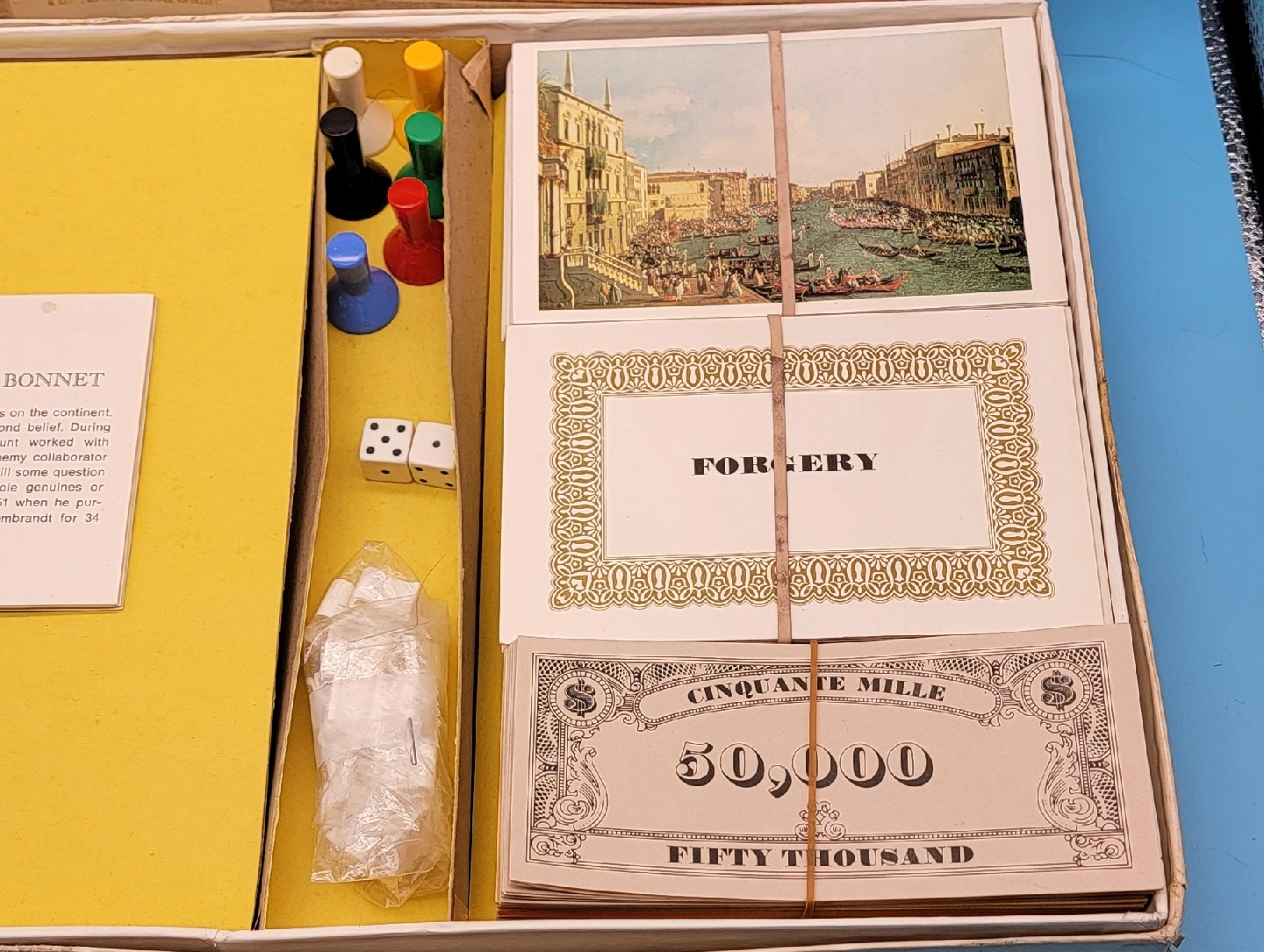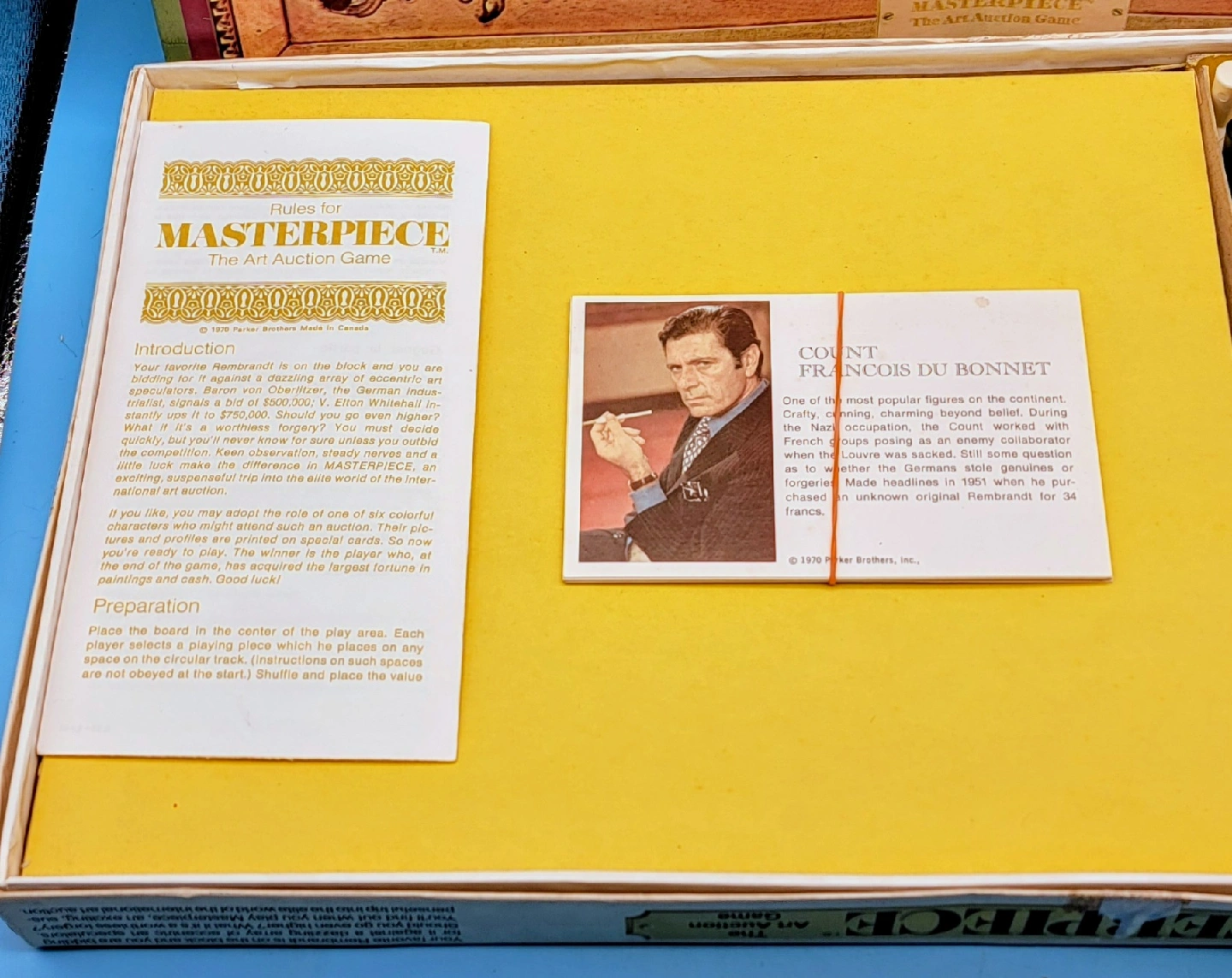 Selling a First Edition (1970) board game called Masterpiece: The Art Auction Game by Parker Brothers! It's complete with all the pieces, including the board, cards, money, and tokens. A fun game for art lovers and collectors! Please look closely at the attached photos to go along with the description and the condition of the item. Willing to ship at the Buyers expense. Please see my many other listings. Thank you for looking. Have a Happy Day! 🙂