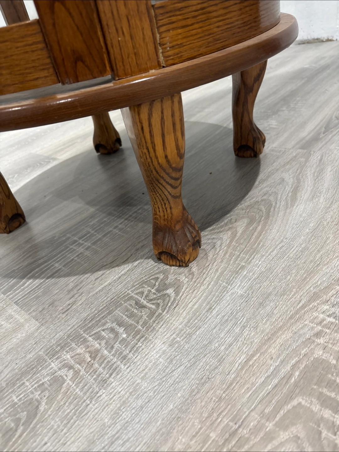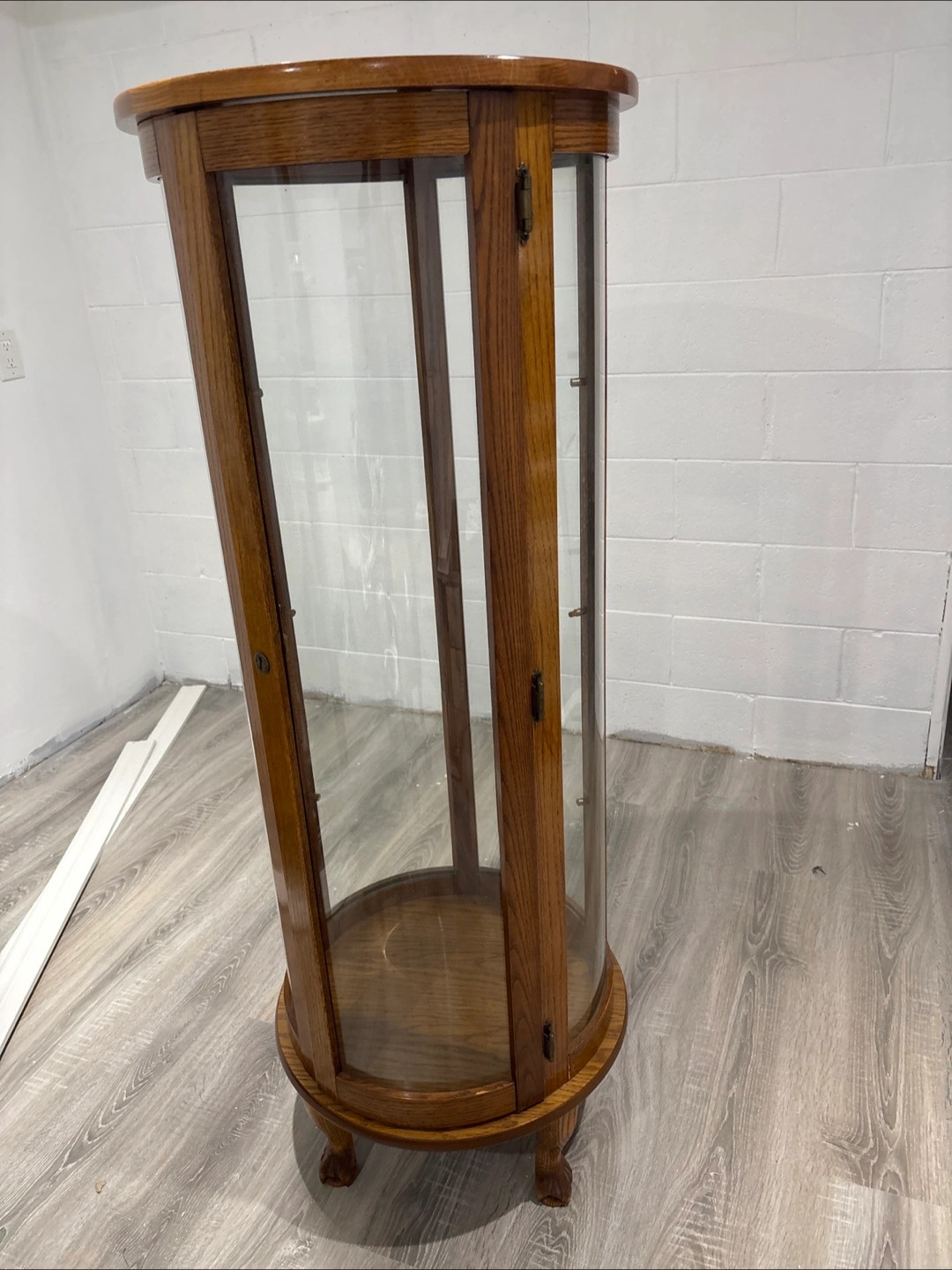 Selling a charming vintage wooden display cabinet! It features a beautiful wood finish and a classic design. The cabinet has glass panels, perfect for showcasing your collectibles or favourite items. The wood has a lovely grain pattern, and the legs have a unique claw-foot design. It's a great piece to add character to any room