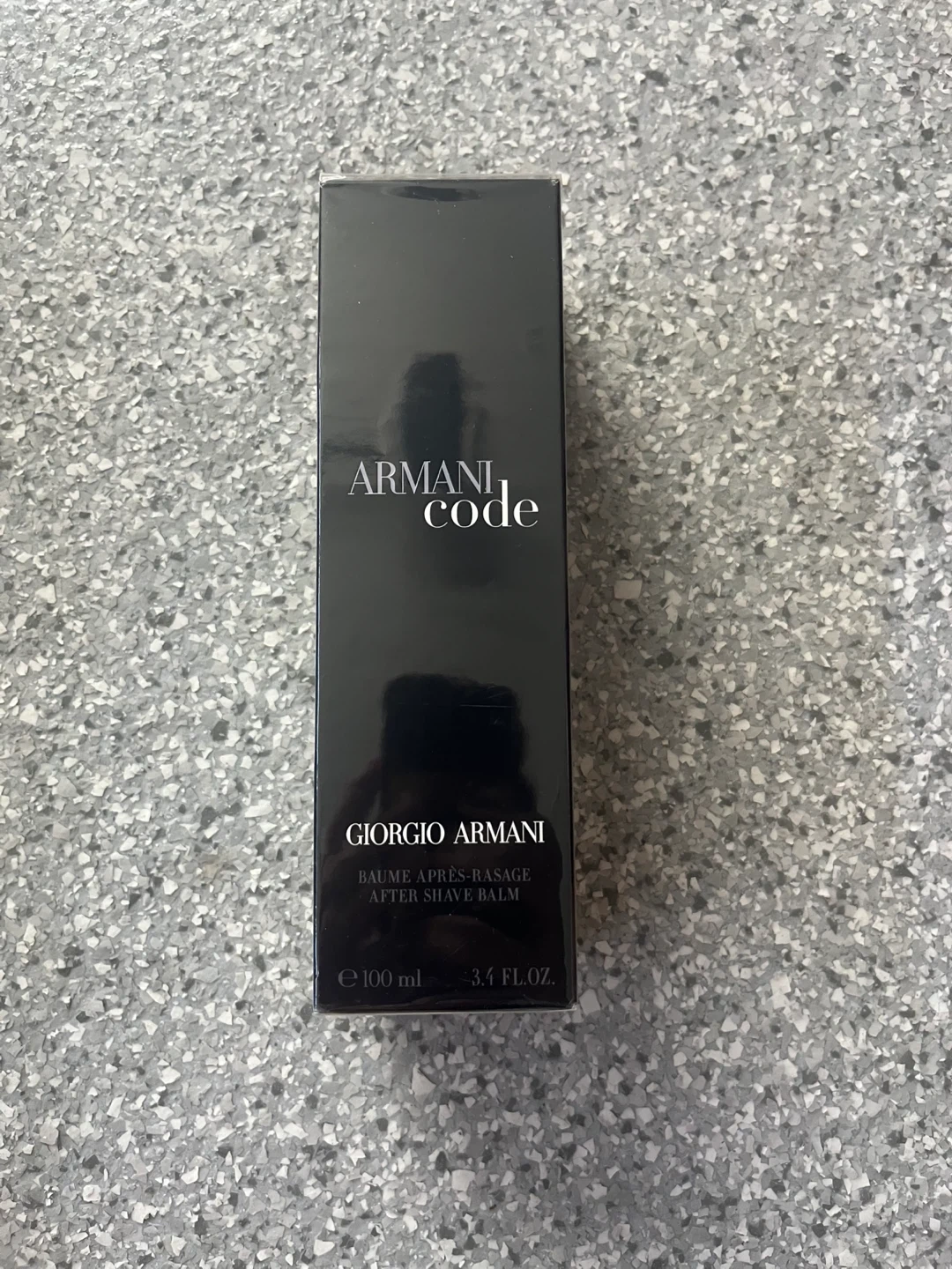 Selling a Giorgio Armani Code After Shave Balm. It's a 100ml bottle, perfect for keeping your skin feeling great after shaving! It's a baume après-rasage, so it's nice and soothing