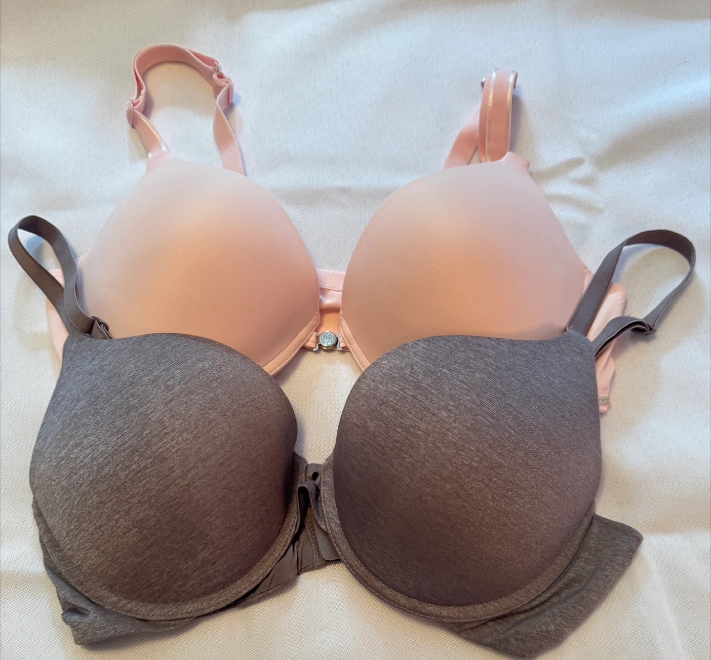 Two bras in good condition, one is pink and the other is grey. Great for everyday wear! Victoria Secret and La vie en rose. Worn once, didn’t fit right. Selling together $20 for both.