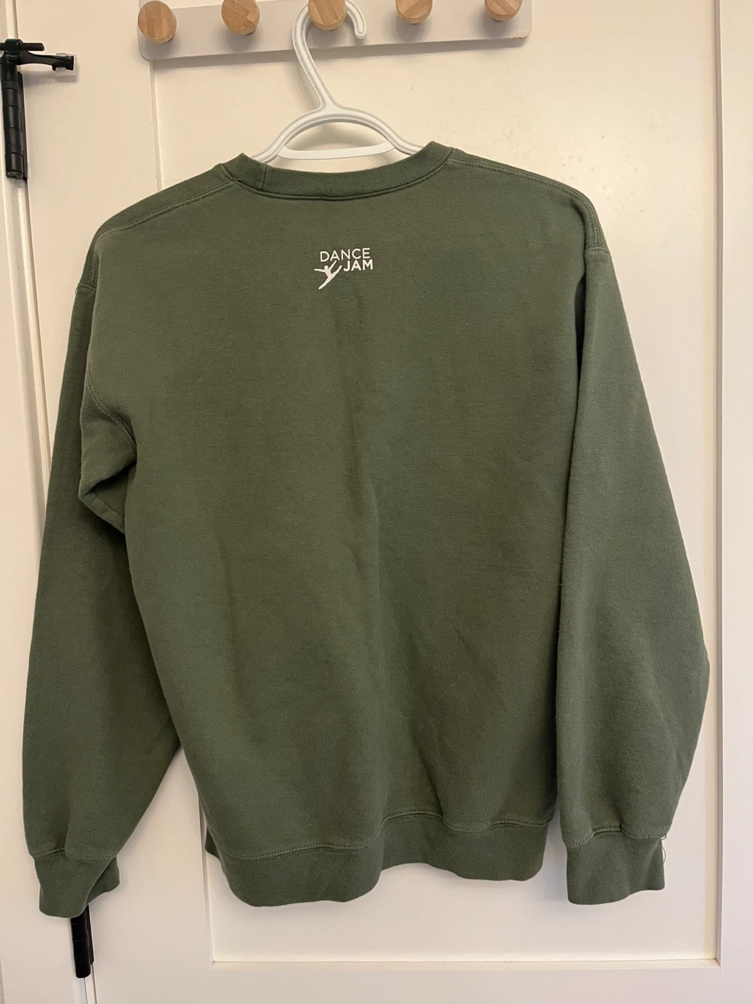 Selling a Dance Jam sweatshirt in olive green. It says "it's a good day to be a dancer" on the front and has the Dance Jam logo on the back. It's in great condition!