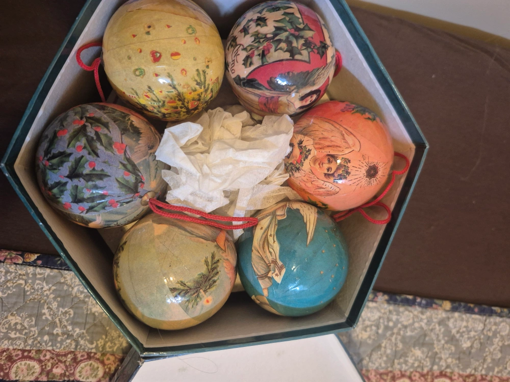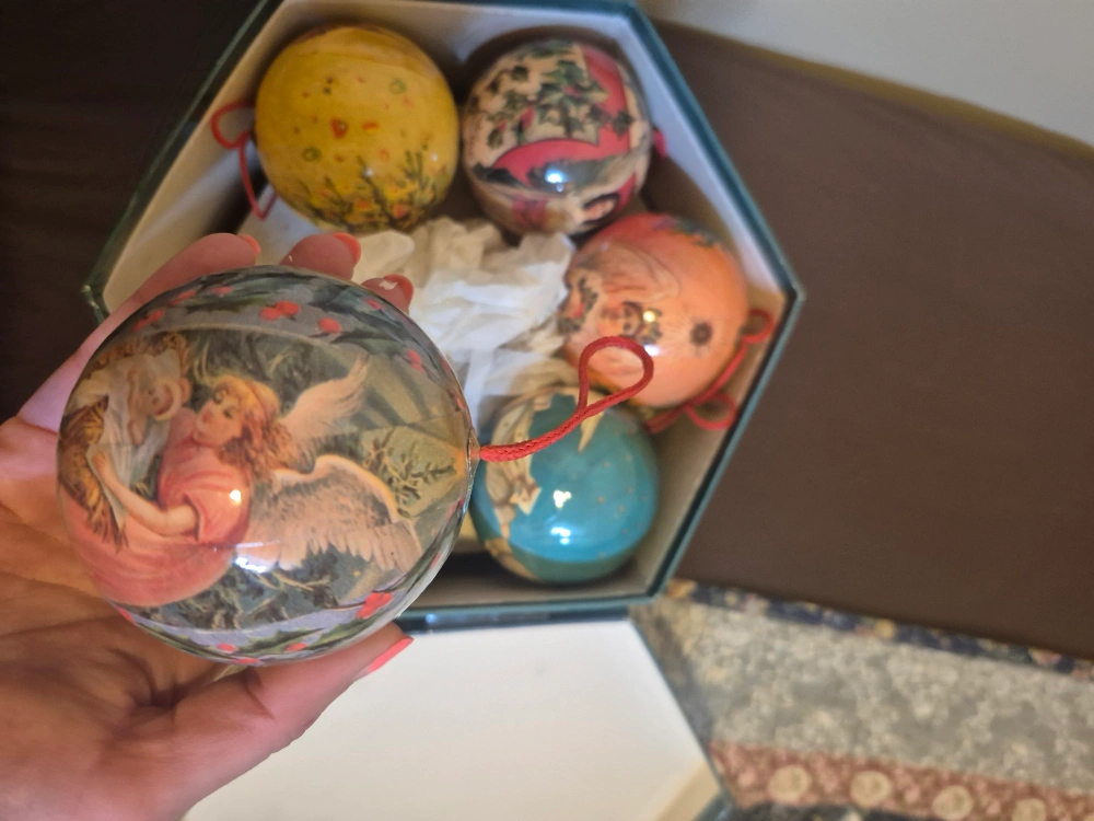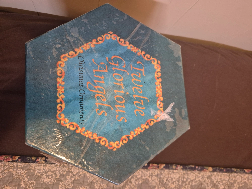 Selling a set of Twelve Glorious Angels Christmas Ornaments! They come in their original box, ready to add a touch of festive charm to your home Antique looking. I think actual age is only 30 years old.