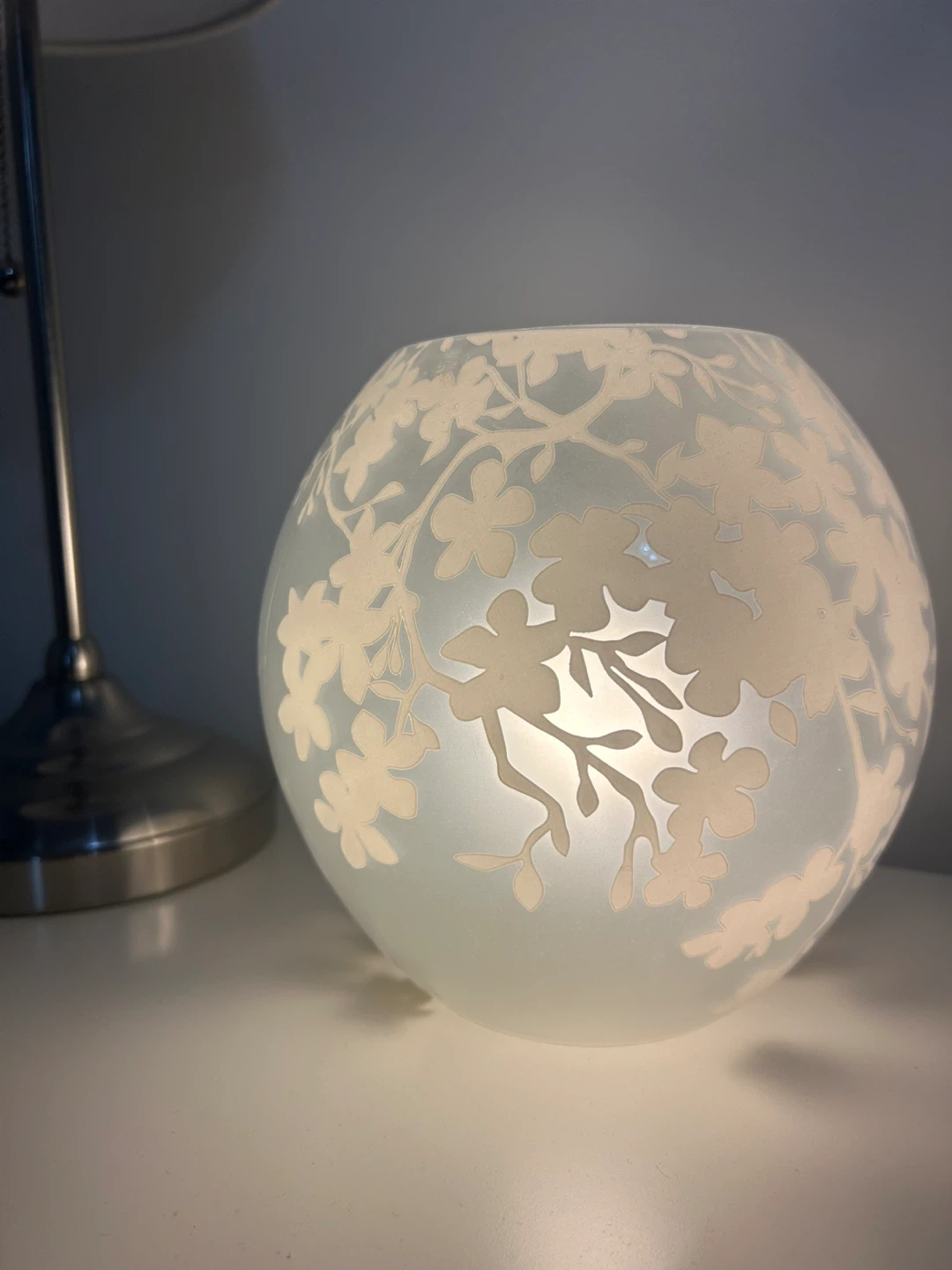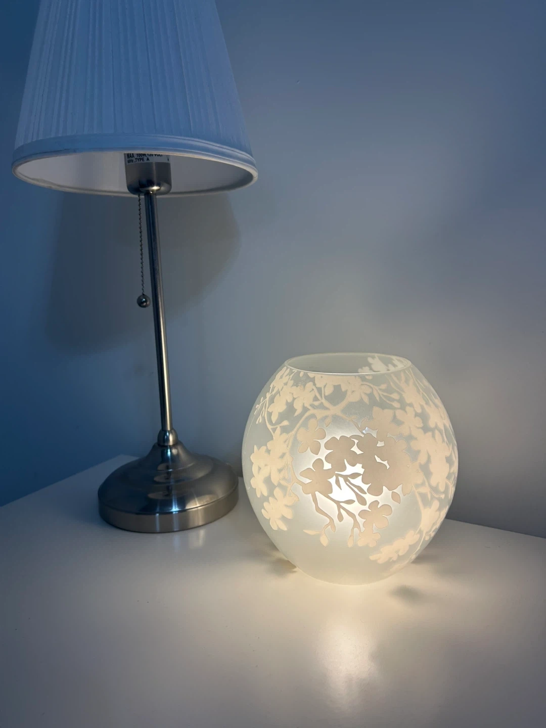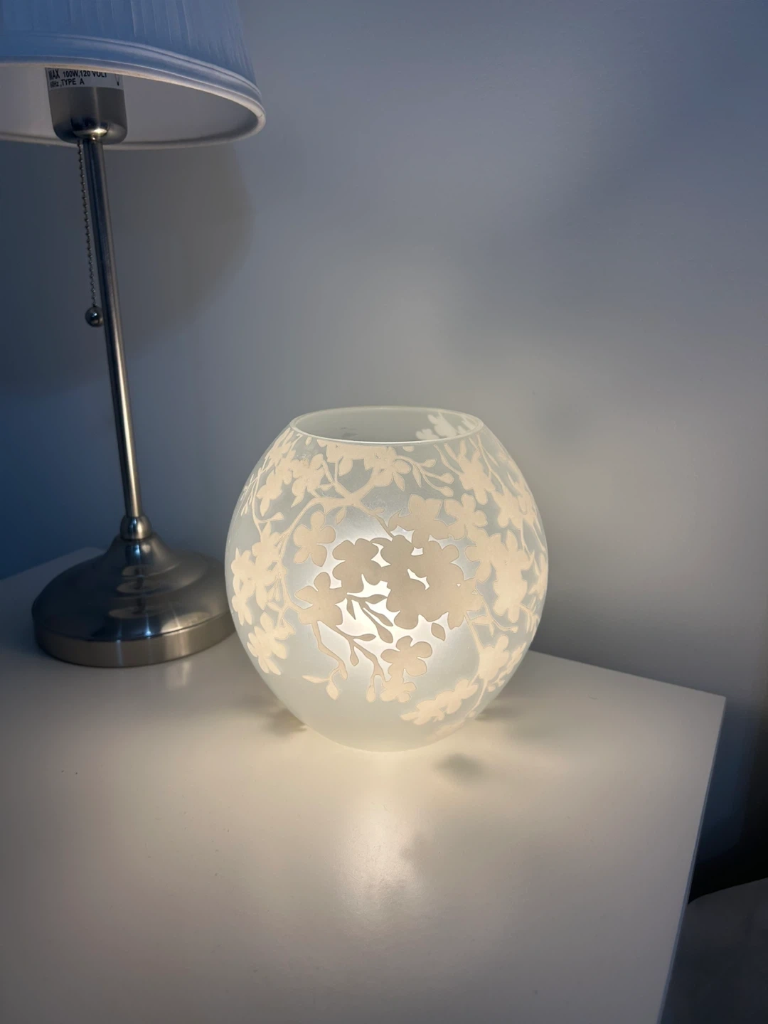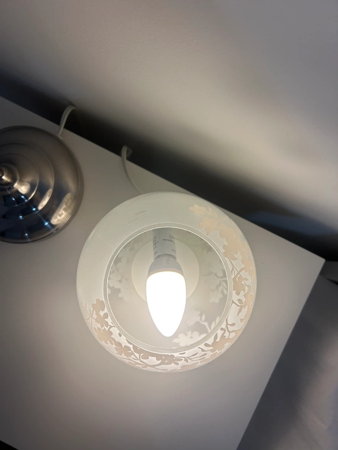 Here's a lovely round lamp with a delicate floral pattern. It gives off a nice, soft light, perfect for creating a cozy atmosphere in any room. It's in great condition and ready to brighten up your space! Ikea KNUBBIG Originally retailed for $20 Great working lamp in smoke-free home. Adds a cozy touch to any room or bedroom. Comes with working lightbulb. Pickup in Woodbridge near 9600 Islington Ave or can meet at St. andrew station weekday mornings before work Measurements: Max.: 40 W Height: 18 cm (7 ") Diameter: 18 cm (7 ") Cord length: 2.0 m (6 ' 7 ")