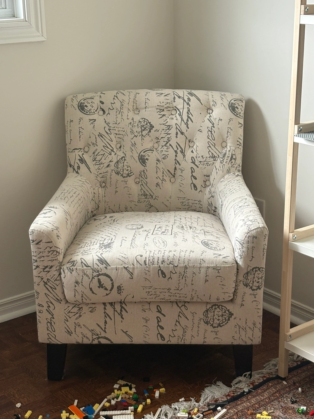 Traditional Channel-Back Upholstered Accent Armchair, Damask