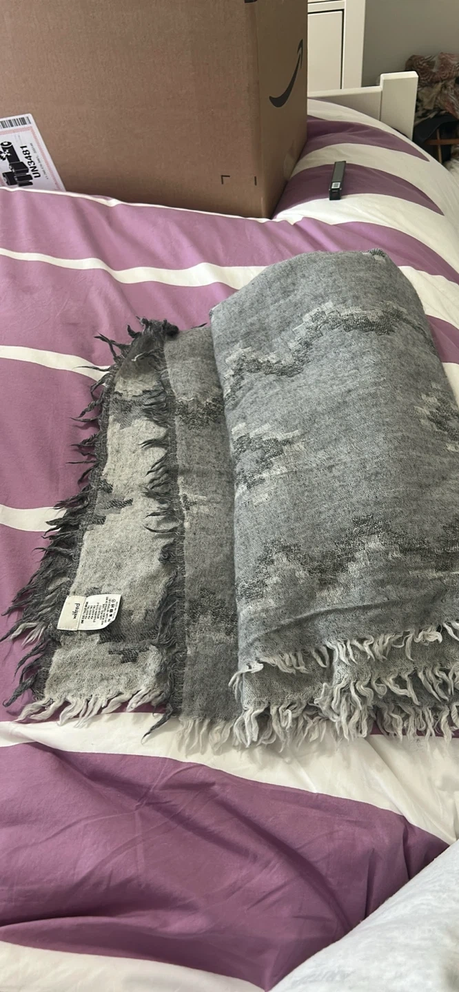 Cozy up with this Wilfred Free Diamond Mosaic Scarf! It's a stylish and comfortable accessory to add to your wardrobe. The scarf features a unique diamond mosaic pattern and fringed edges, making it a versatile piece for any outfit Only worn a few times. This is such a classic piece.