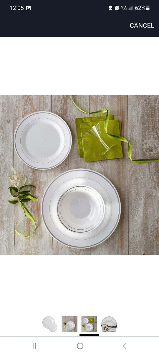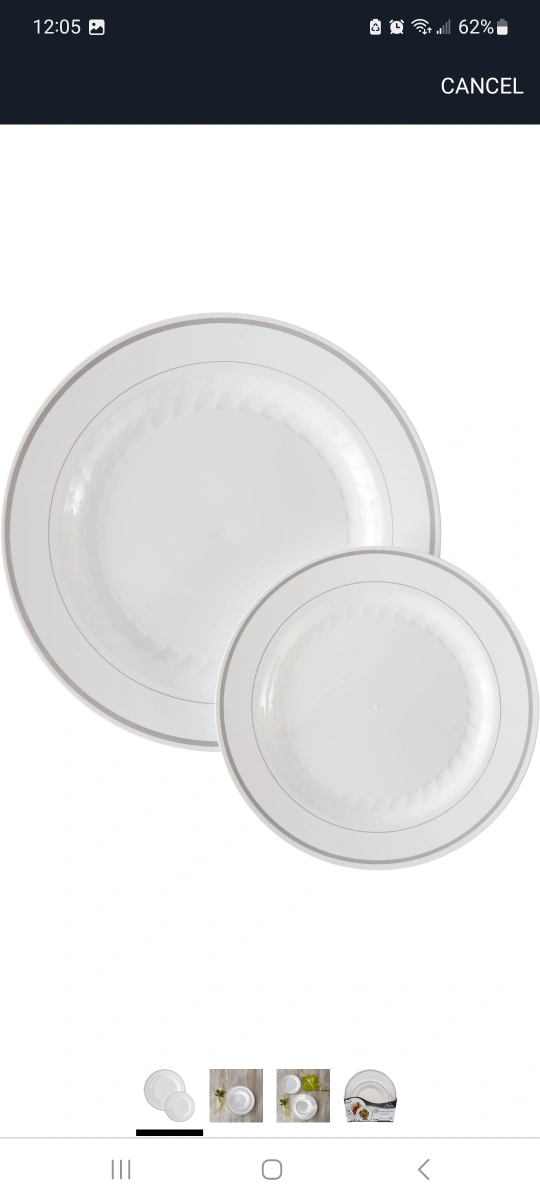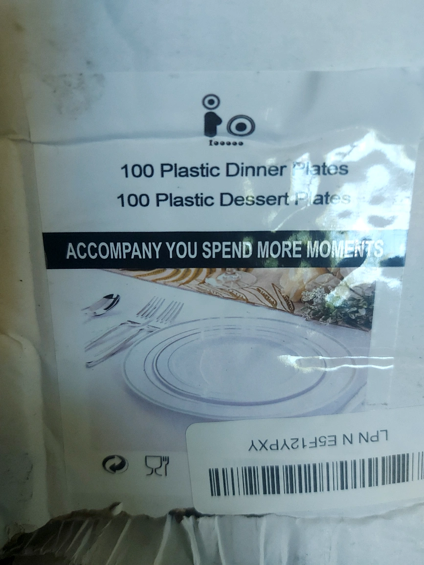 Selling a set of 100 plastic dinner plates and 100 plastic dessert plates. These are perfect for parties or any large gatherings! They're lightweight and portable, making cleanup a breeze