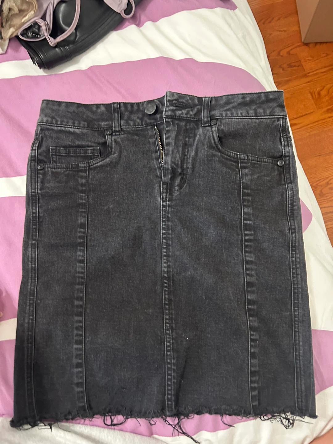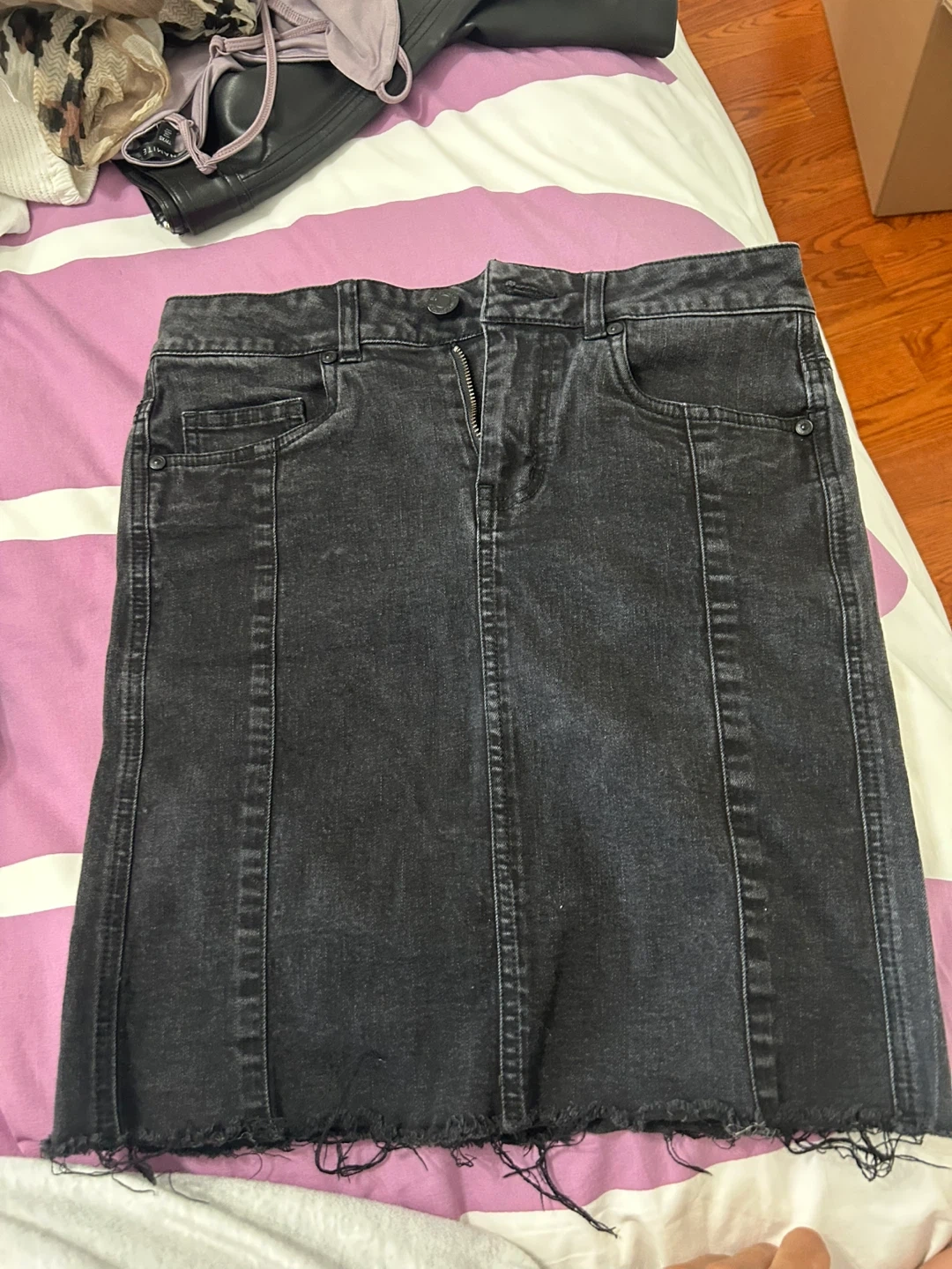 Selling a cute black denim mini skirt from Noisy May / M Boutique! It's in great condition and perfect for everyday wear. The skirt has a classic denim look with a frayed hem for a bit of edge. Worn only 2 times.