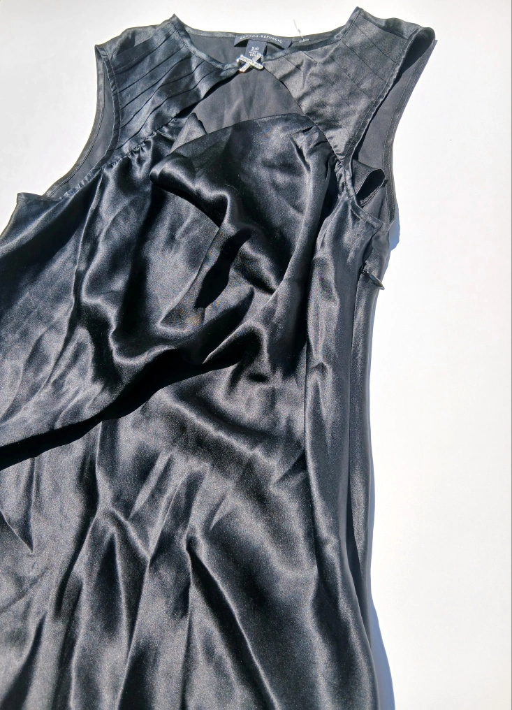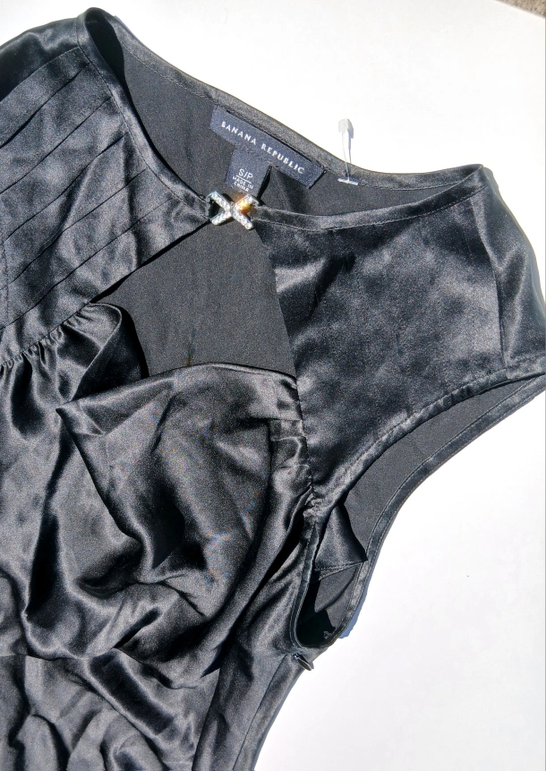 Here's a stylish black sleeveless top from Banana Republic! It's a size small and made from a silky material. Perfect for dressing up or down!