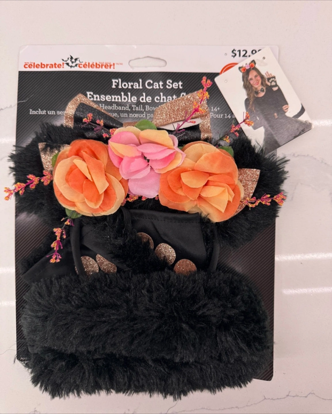 HALLOWEEN COSTUME- FLORAL CAT SET ACCESSORIES 14+ BRAND NEW includes: headband, tail, bowtie, gloves PICKUP IN COURTICE NEAR HWY 2 AND COURITCE RD all sales are final