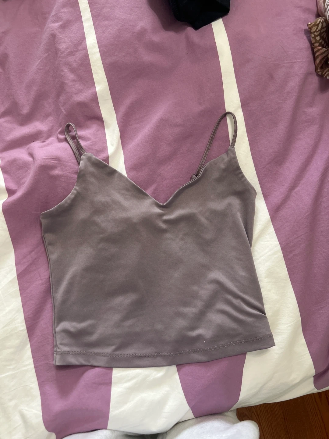 Here's a simple purple brown cami top! It's a size XS and in great condition. Perfect for layering or wearing on its own during warmer weather. It’s actually not very small - i think it fits bigger like a Small