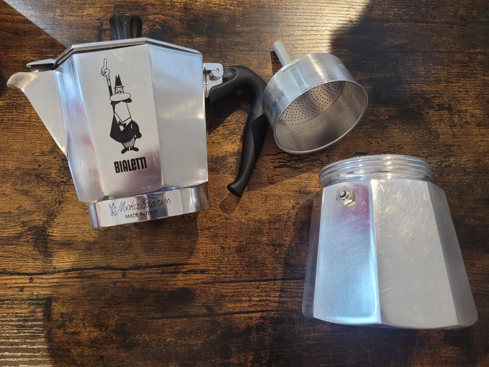 Selling a Bialetti Moka Express stovetop espresso maker. This classic Italian coffee maker is perfect for brewing rich, authentic espresso right on your stovetop. Used.