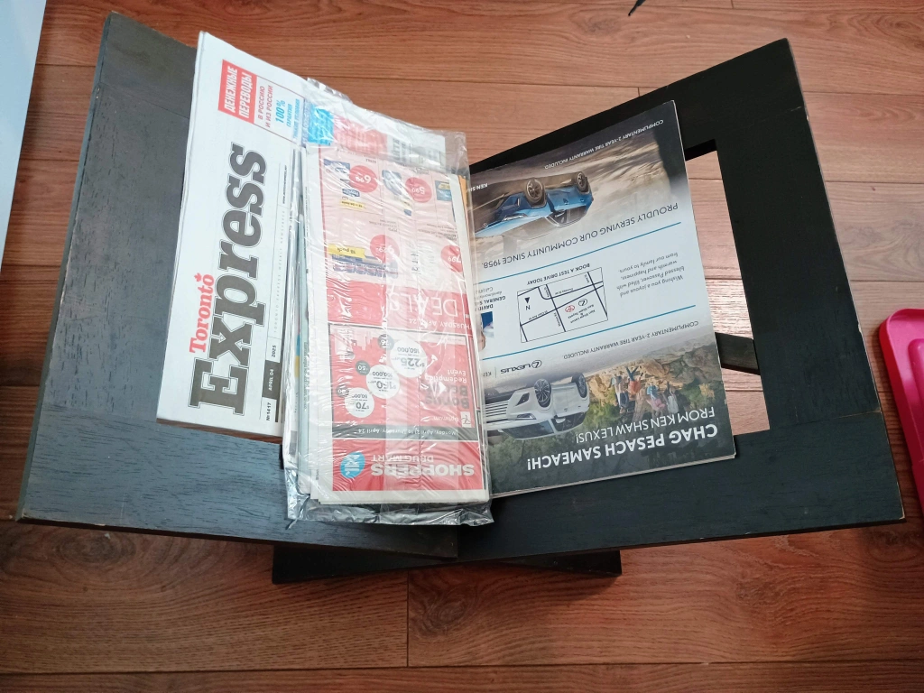 Selling a black wooden book stand. It's in good condition and perfect for displaying your favourite books or magazines. The stand measures approximately 18 inches in height and 22 inches in length.