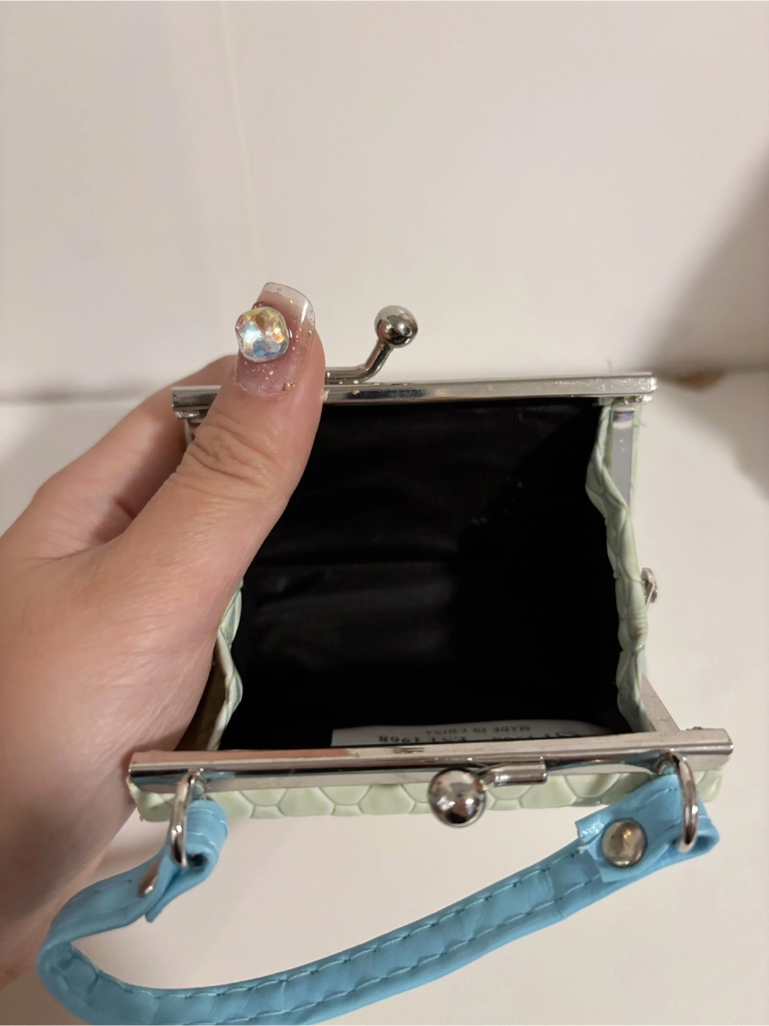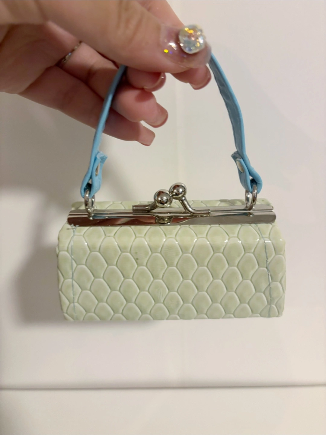 This is an adorable mini lipstick bag to keep in your purse to always be able to find your lipstick and chapstick, even with tons of items in your purse. It's got a unique texture and a sweet light green colour with baby blue handles. Free with any purchase that is $10 or more (or total of $10+) Has a small gloss stain at bottom.