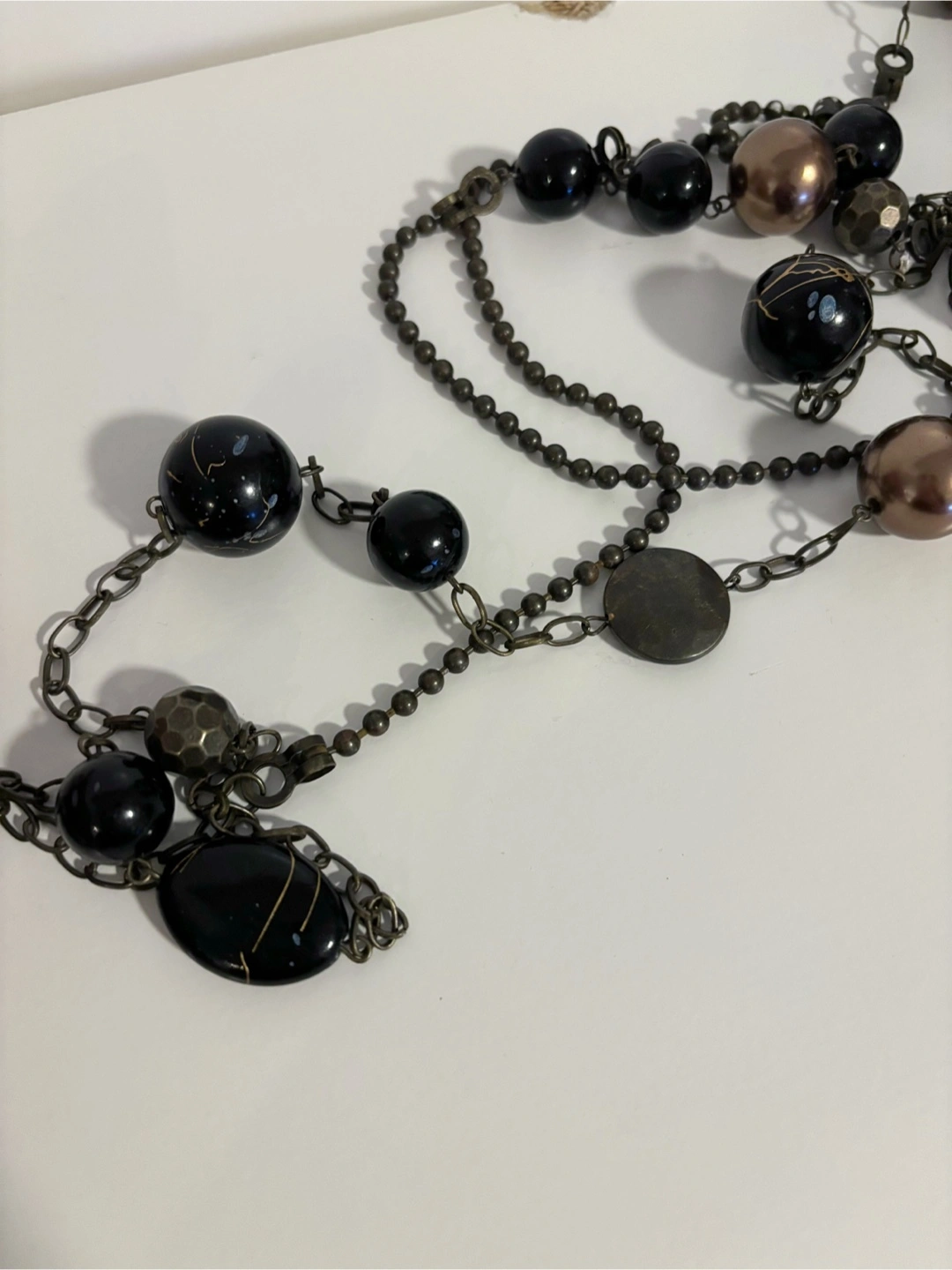 This is a beaded necklace with black and bronze coloured beads. It has that nice vintage vibe to it. Free with any purchase of $10+ as an add on.