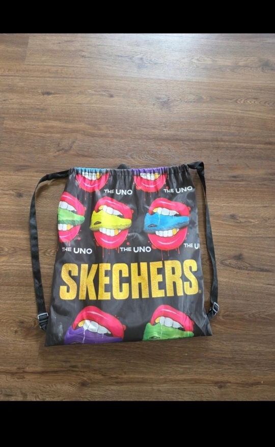 Check out this Skechers drawstring bag! It features a fun design from The Uno collection. Perfect for carrying your essentials.