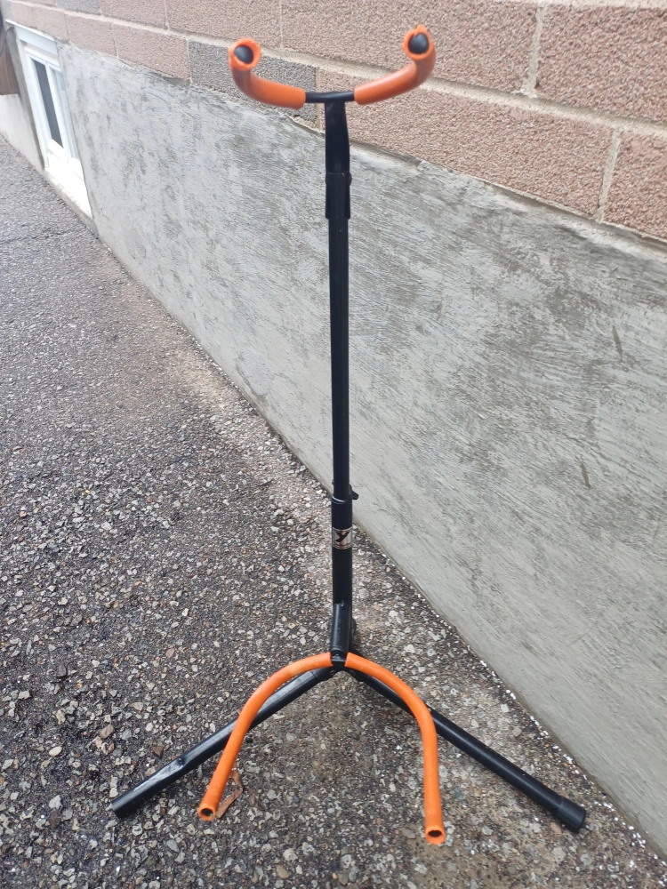FREE Yorkville guitar stand in black. Ready to hold your guitar.