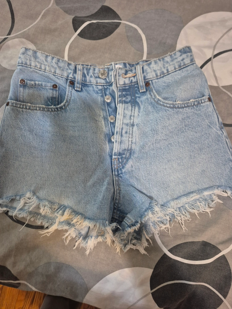 Cute Zara denim shorts in size 4. They have a frayed hem and a light wash. Perfect for summer!