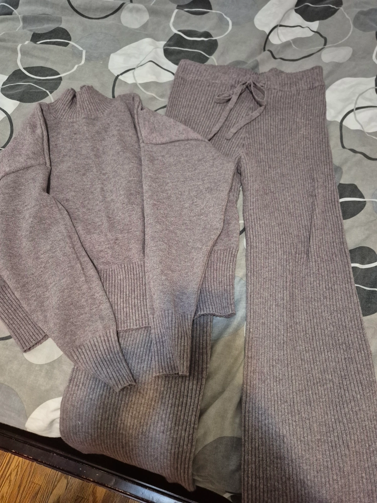 Cozy up in this Suzy Shier knit sweater and pant set! It's a matching set in size M/M. The material is a blend of 63% acrylic, 25% polyester, and 12% rayon, making it super comfy for lounging or casual outings