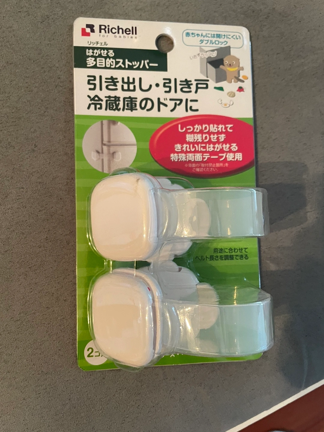 Keep your little one safe with these Richell cabinet and fridge door locks! These multi-purpose stoppers are designed to prevent babies from opening drawers, cabinet doors, and refrigerator doors. They feature a double lock for extra security and can be easily adjusted to fit your needs. They stick firmly but can be removed without leaving any residue, thanks to the special double-sided tape used
