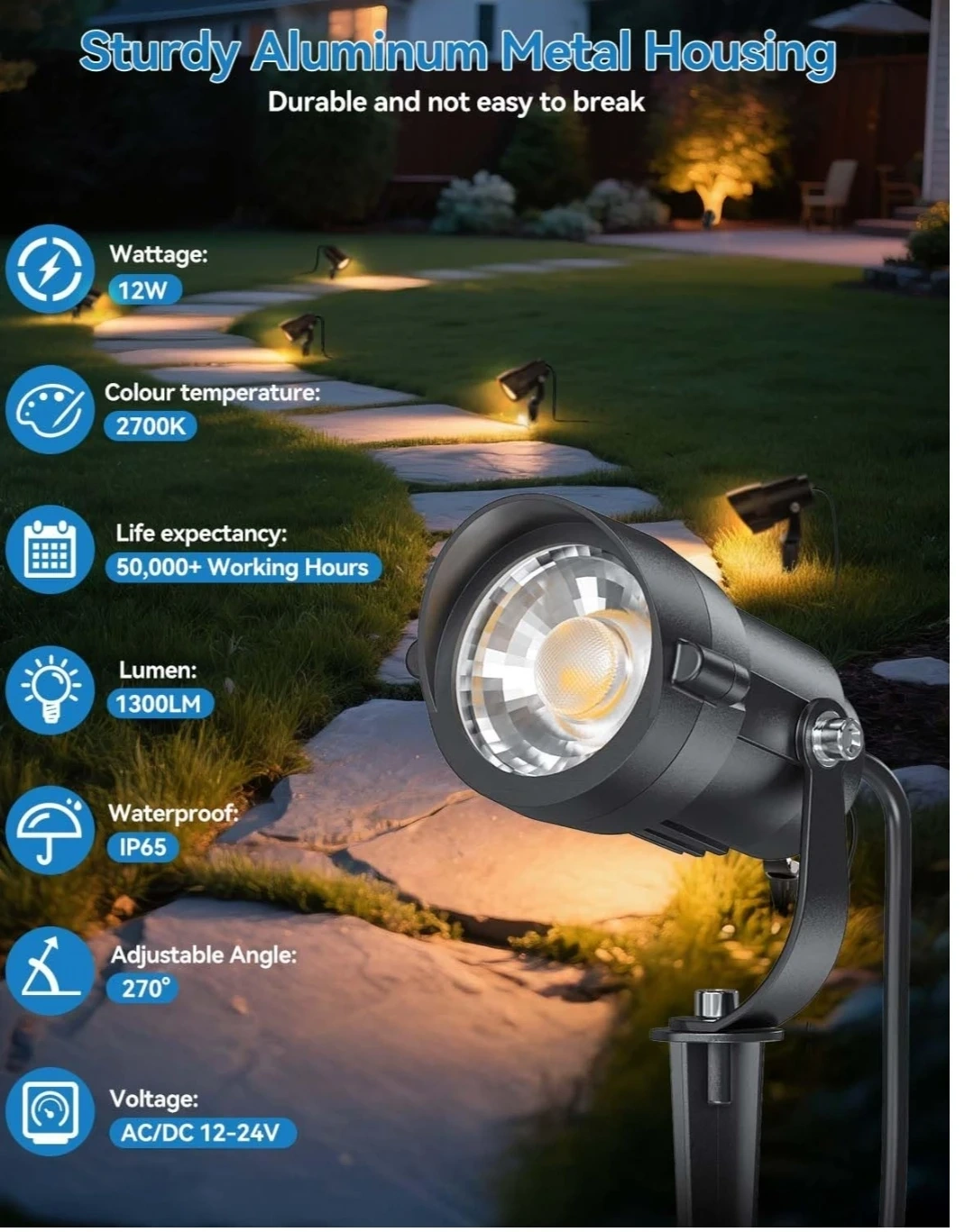 Selling a pair of H3OITEC LED landscape lights. These lights are great for adding some extra light to your yard. They feature: - Sturdy aluminum metal housing - 12W wattage - 2700K colour temperature - 1300LM lumen - Adjustable angle of 270° - IP65 Waterproof They are heat and frost resistant as well
