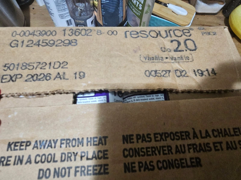 Selling two new boxes of Nestle Resource 2.0 Vanilla nutritional drink. - 24 x 237 ml cartons/boîtes (5.7 L) - Expiry Date: 2026 August 19 New, case is unopened $35 per box Cash only, no etransfers